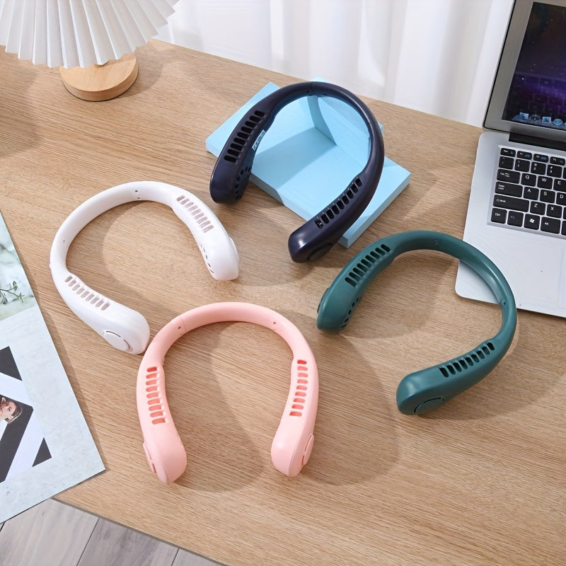 TOOP USB Rechargeable 4-Speed Portable Neck Fan, Bladeless Cooling Fan for Men & Women in White, Pink, Blue, and Teal - Yengil va qulay dizayn, sayohat, ofis va uchun ideal