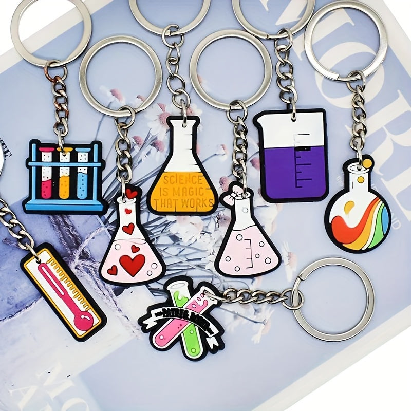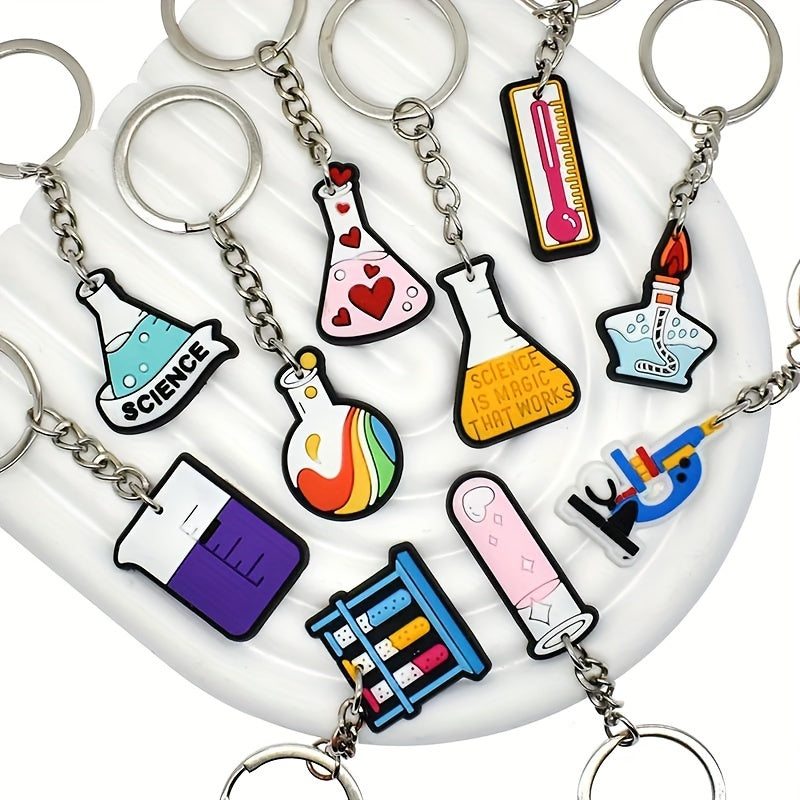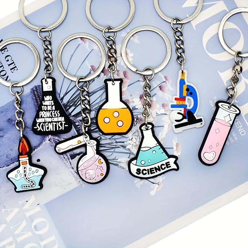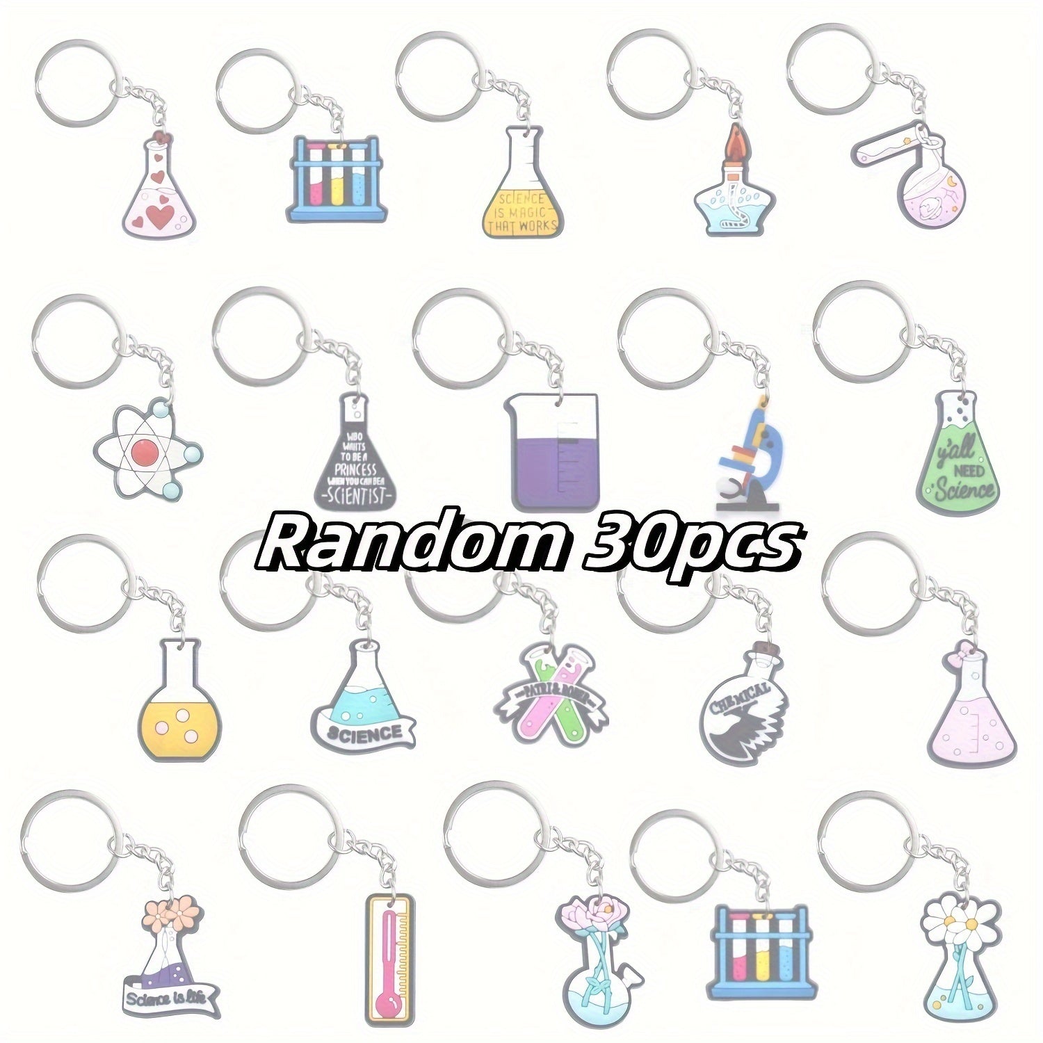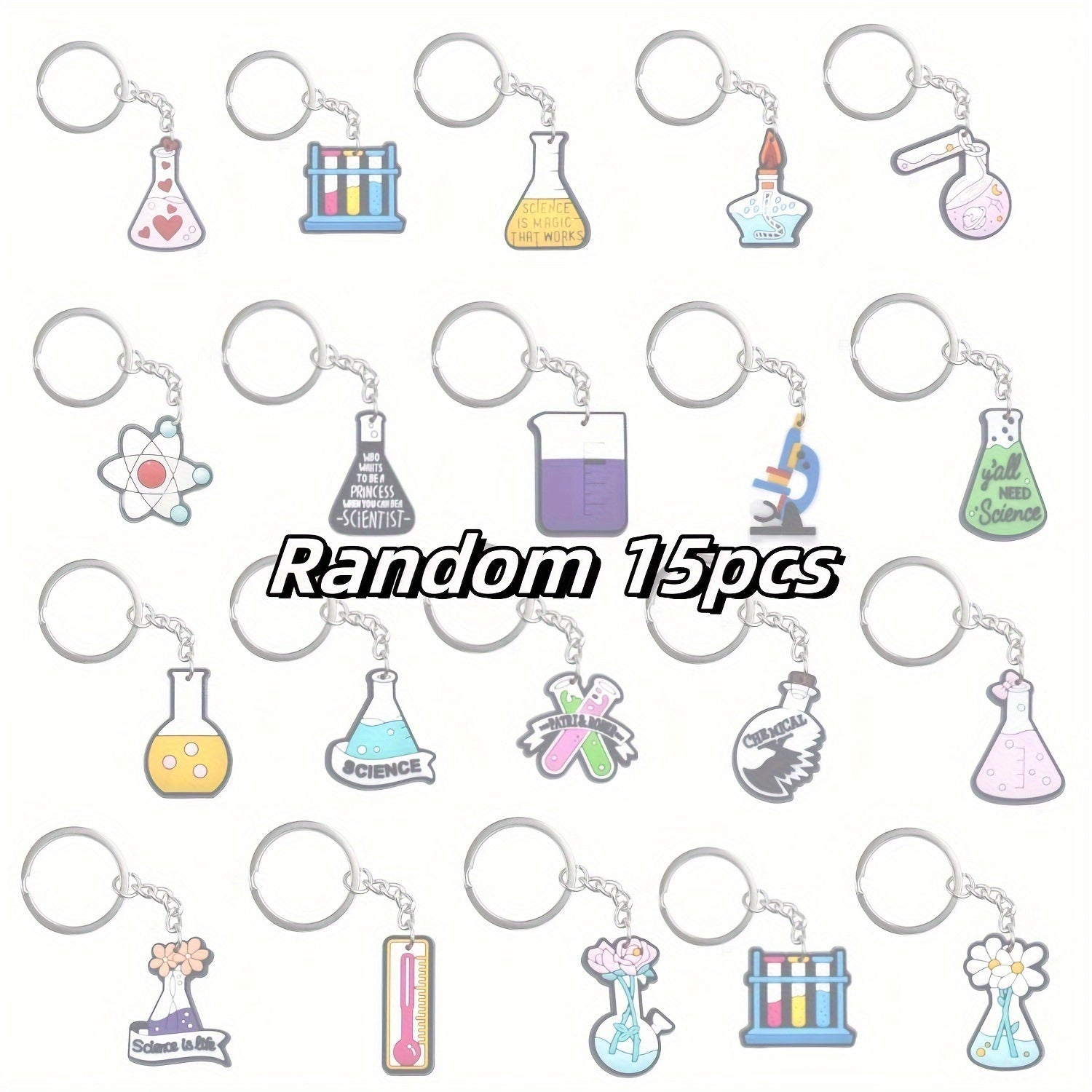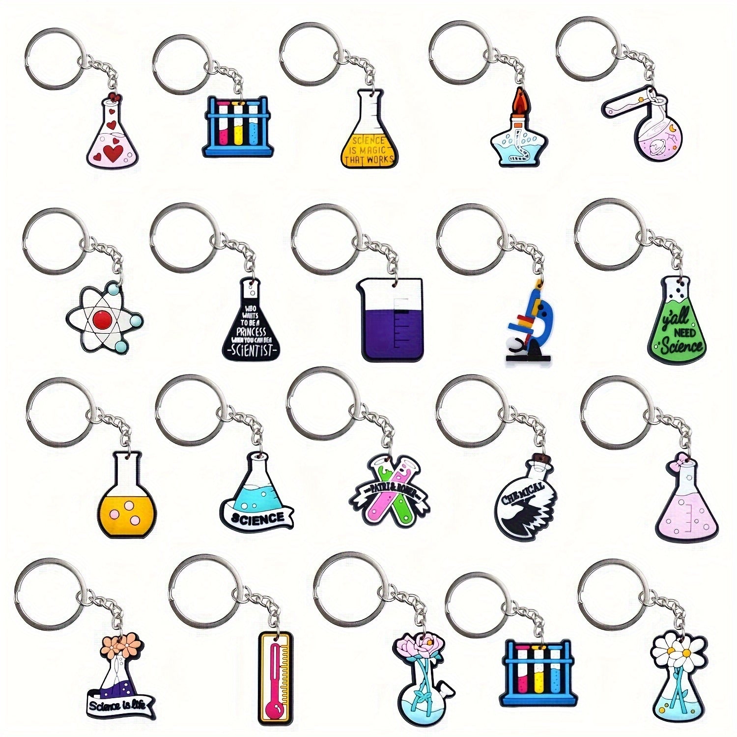 [Eng yaxshi tanlov] Ilmiy mavzudagi dizaynlar bilan kalitlar assortimenti: Test quvurlari, kolbalar, biologiya, kimyo va boshqalar – Talabalar uchun sovg'alar va maktab tadbirlari uchun mukammal!