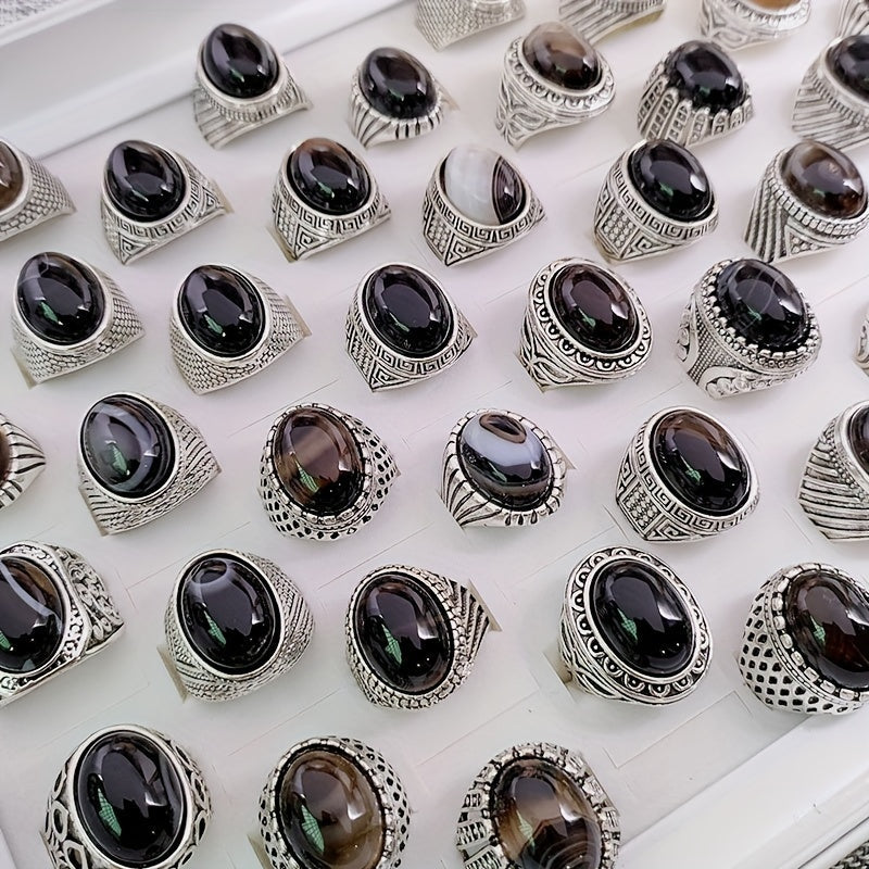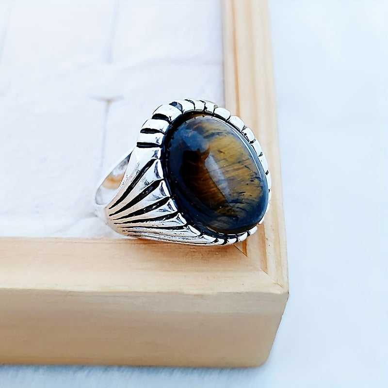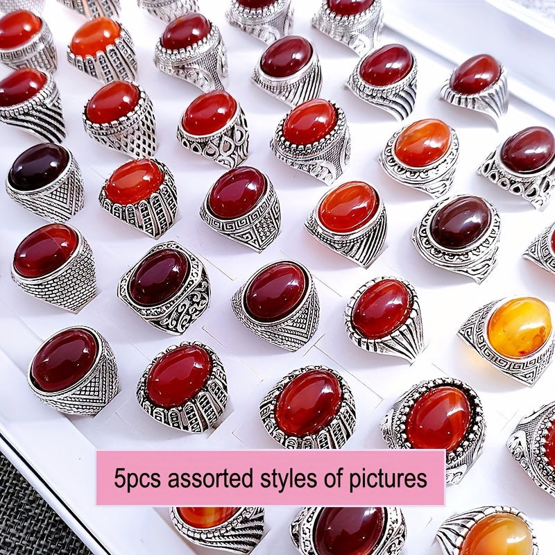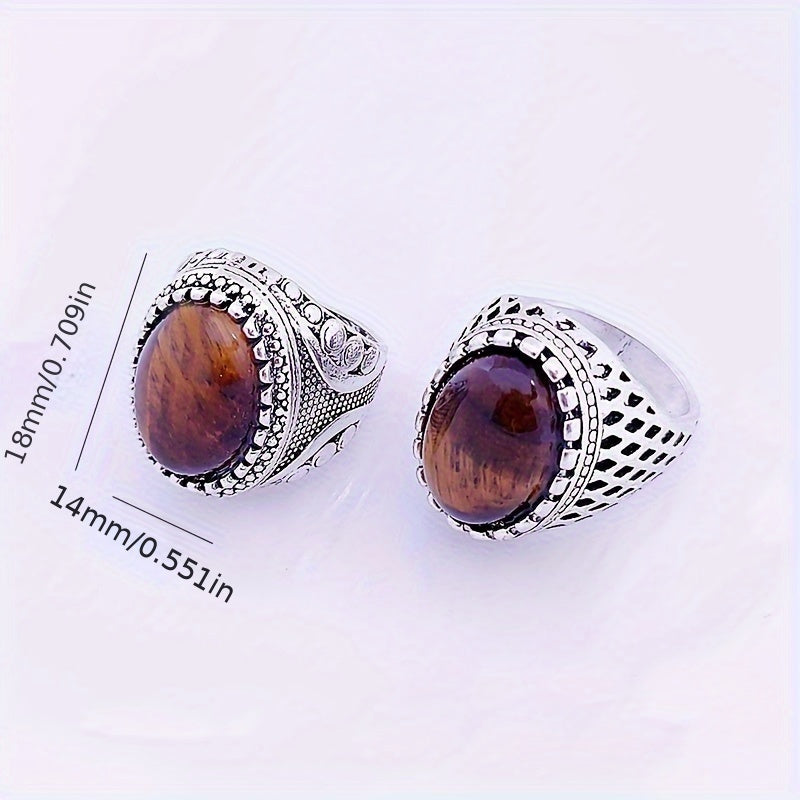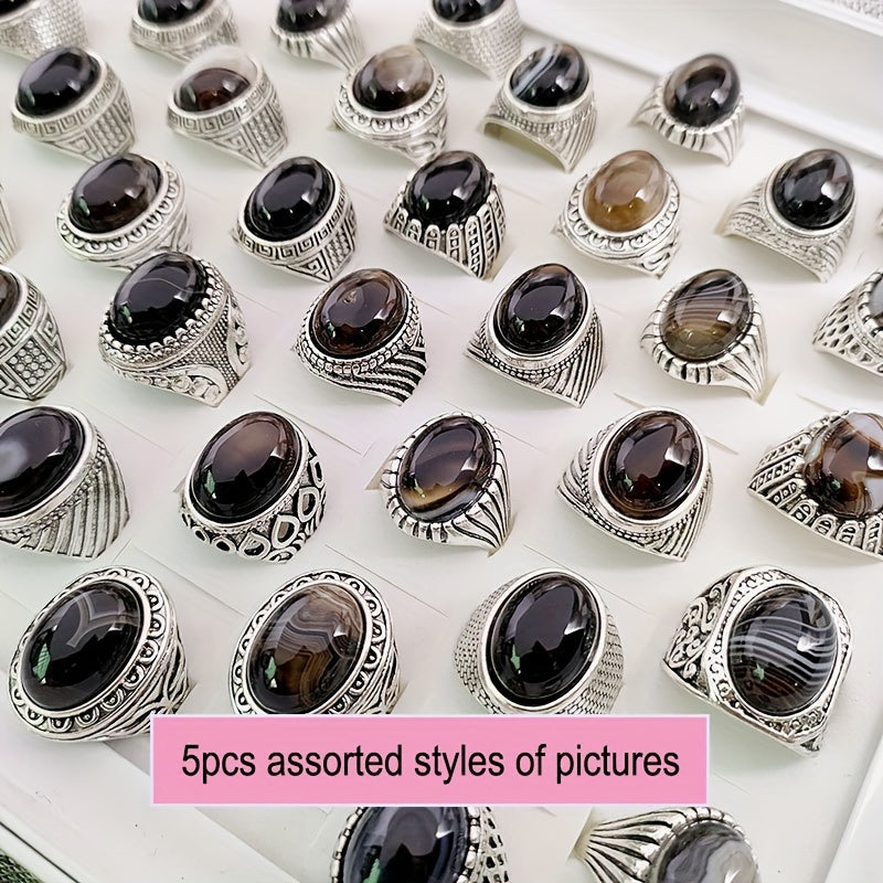 Mijozlar tomonidan eng yaxshi tanlov: 5 ta vintage uslubidagi uzuklar to'plami, tabiiy yo'lbars ko'z toshlari bilan - Sink qotishmasidan tayyorlangan, kundalik va maxsus tadbirlar uchun ideal