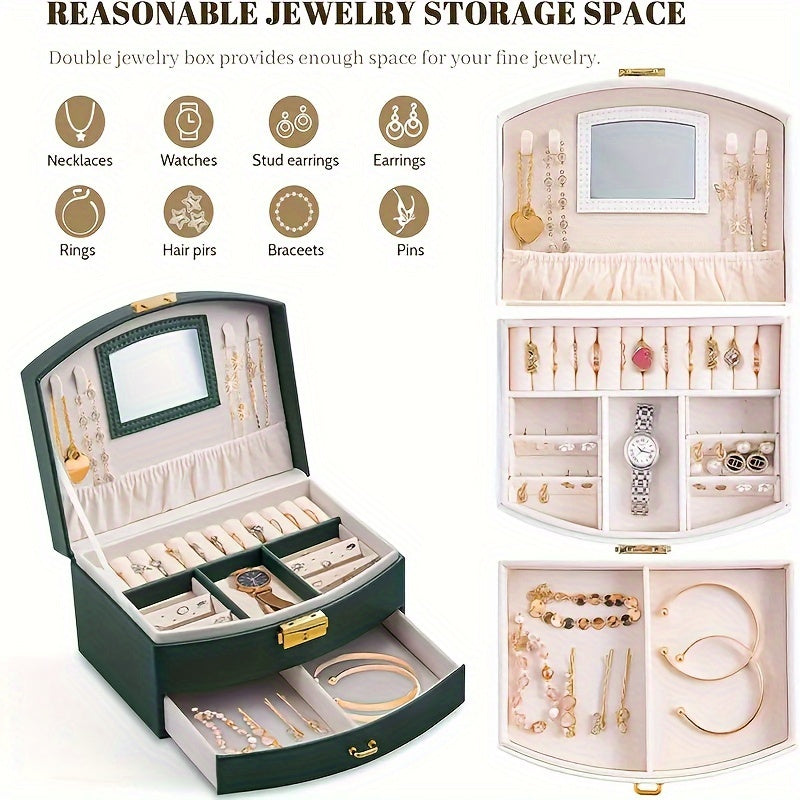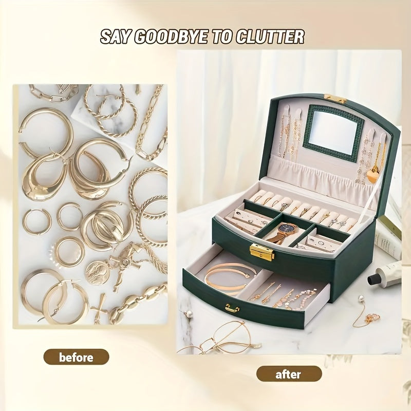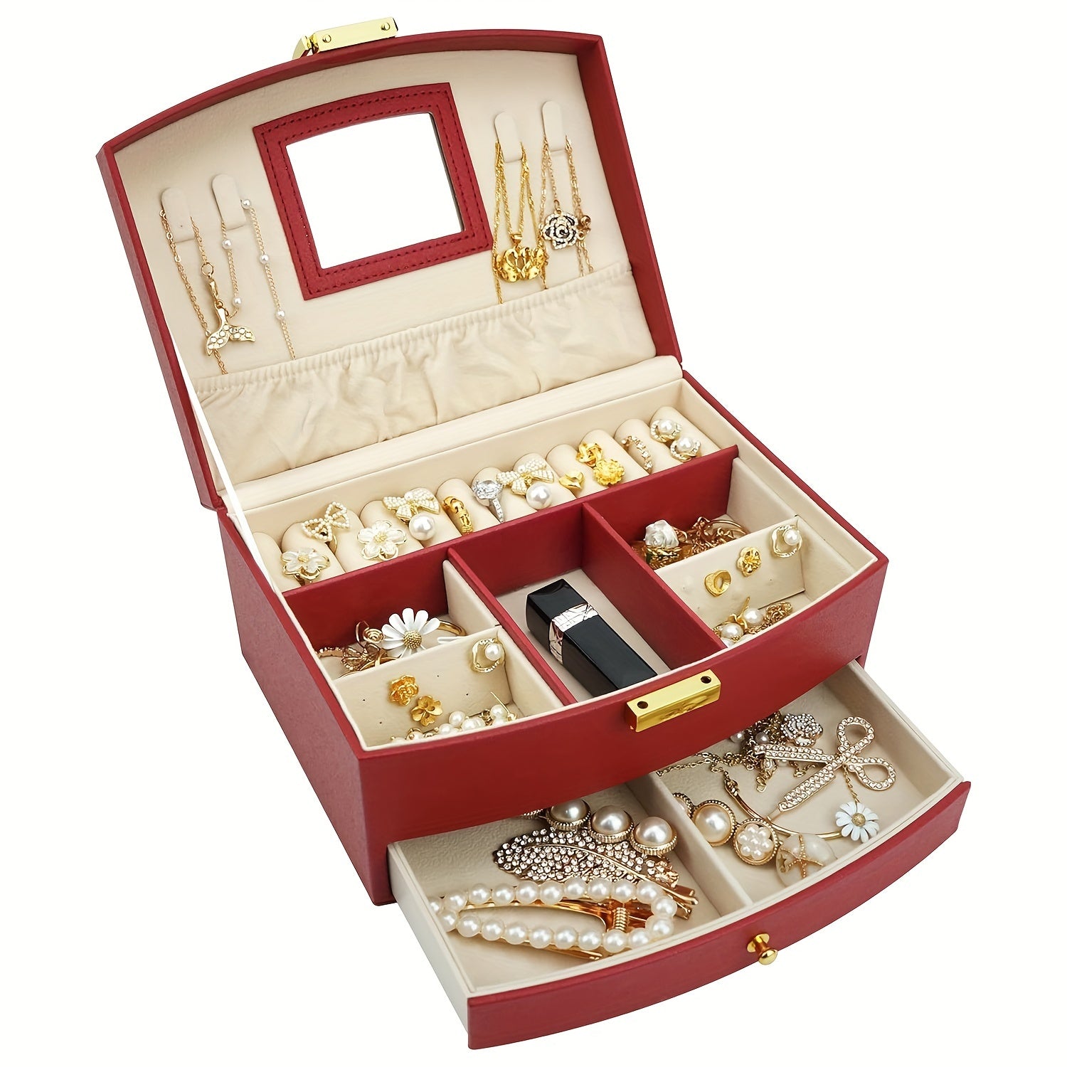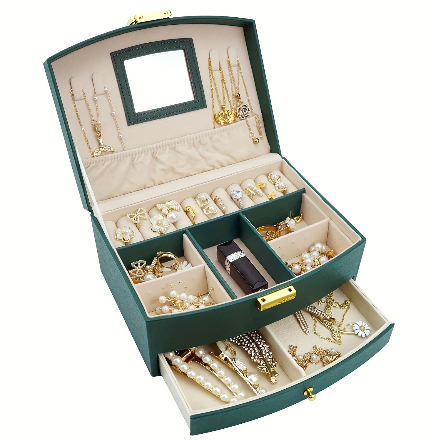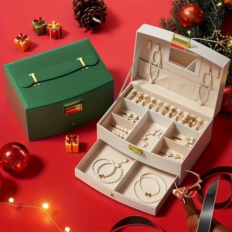 Ko‘p bo‘limli va zipli yopilishi bilan sun’iy charmli zargarlik buyumlarini tashkil etuvchi quti