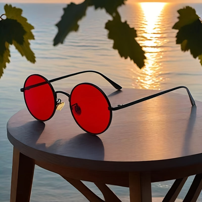 Vintage Punk rostdan yasalgan doira shaklidagi shisha ko‘zoynaklar, tashqi faoliyatlar uchun qizil rangli linzalari bilan