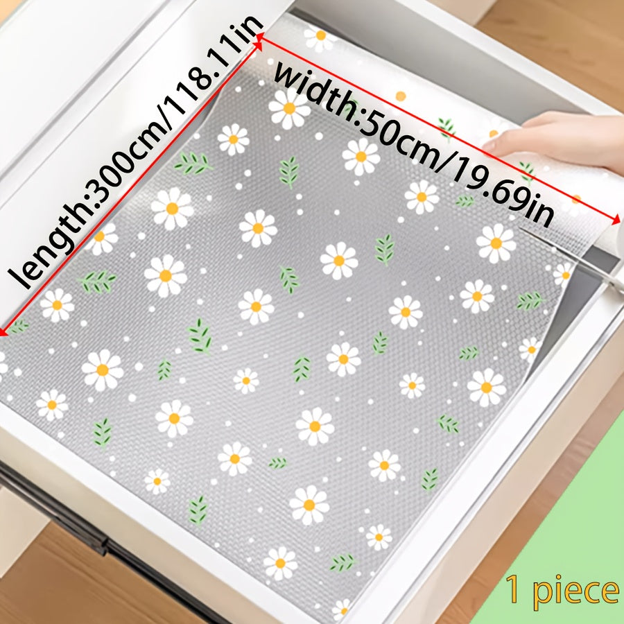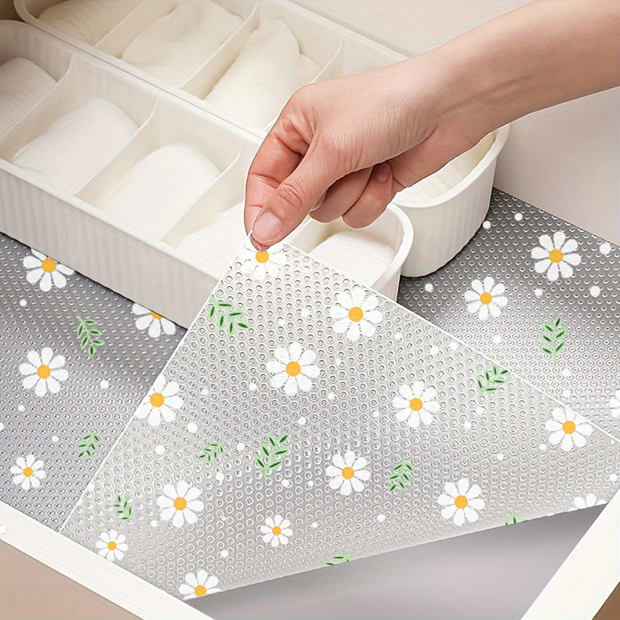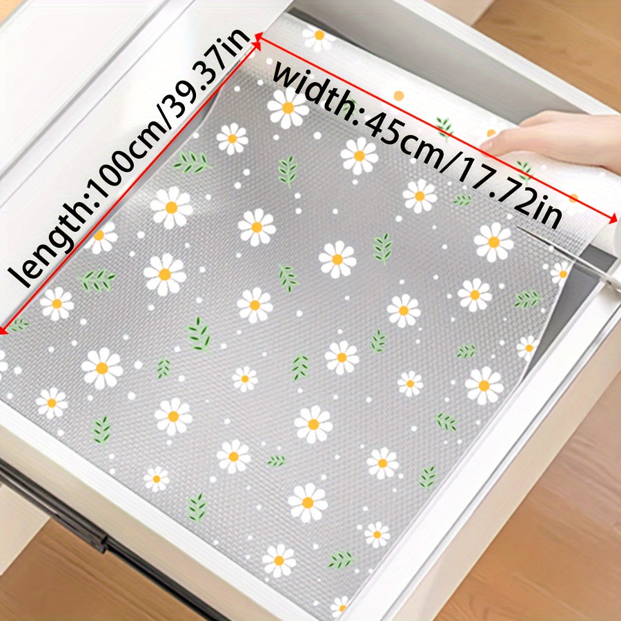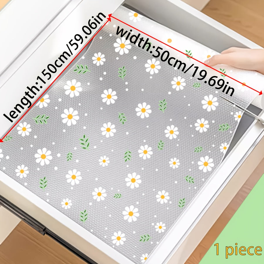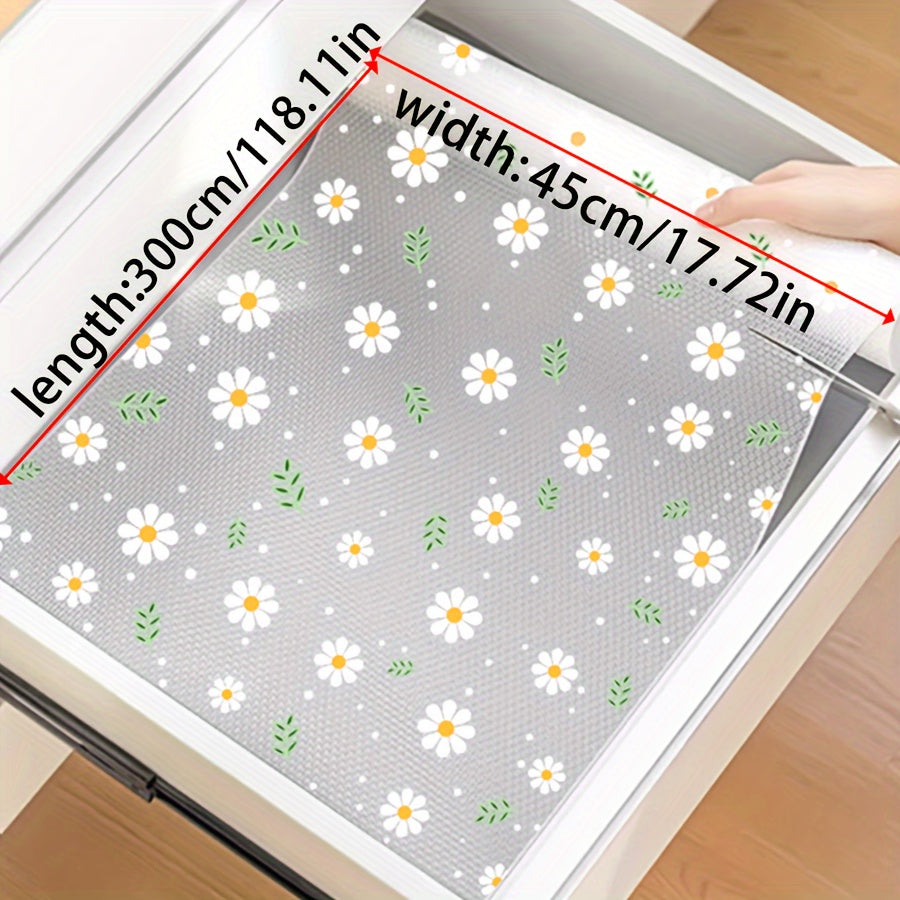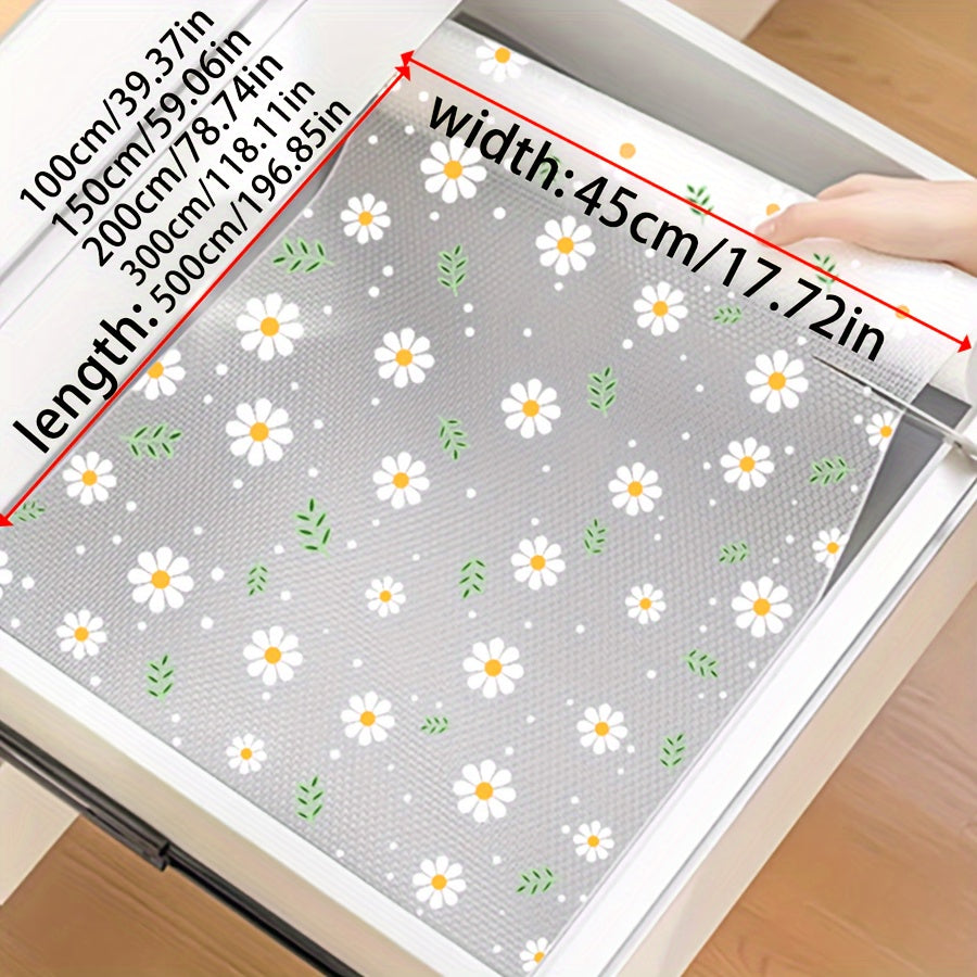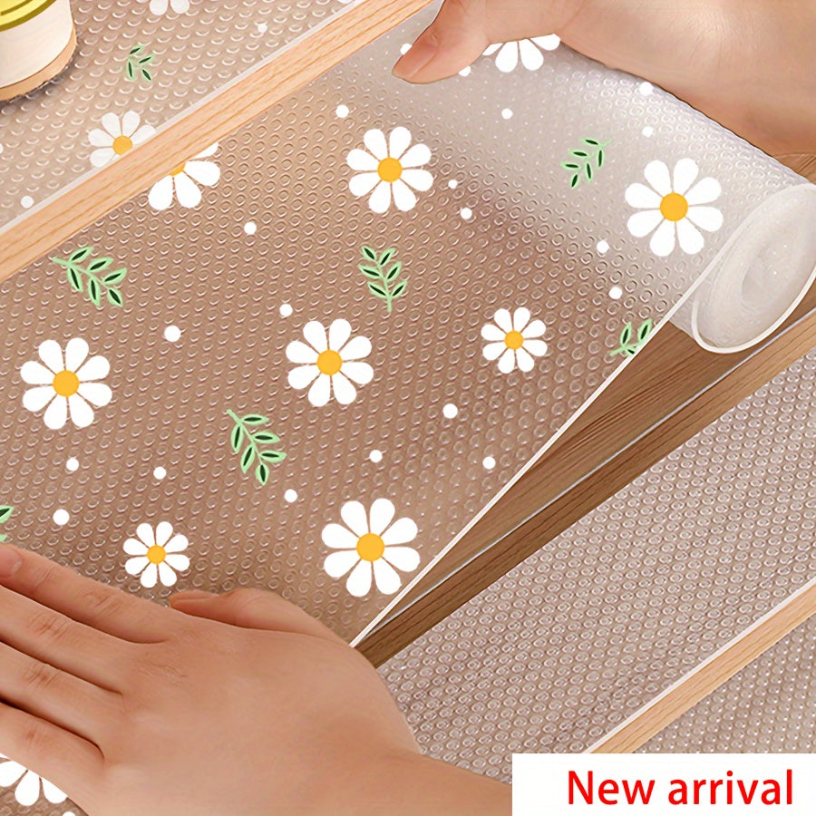 Oshxona shkaflari, tortmalar va poyabzal tokchalari uchun shaffof romashka naqshli javon qoplamasi - Suv o'tkazmaydigan, nam o'tkazmaydigan, dog' va yog'ga chidamli, mog'or oldini oluvchi, chang o'tkazmaydigan - Yapishqoq bo'lmagan EVA mat - 1 rolik