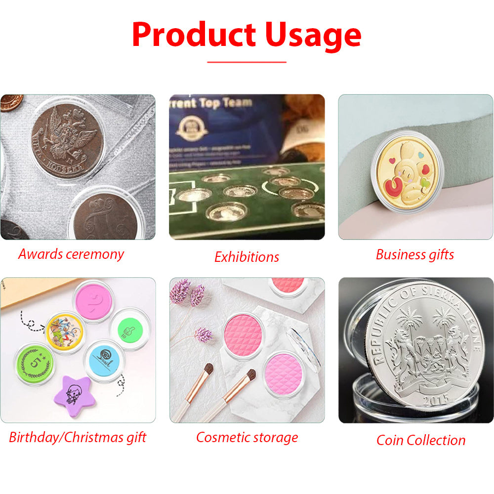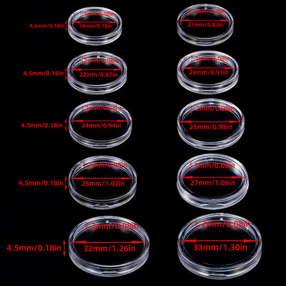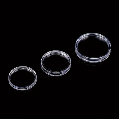 Shaffof tangalar himoya qutilari 25, 50 yoki 100 dona paketlarda mavjud. 19-33mm o'lchamdagi kollektsiyalar uchun mos, esdalik tangalari va medallar uchun mukammal.
