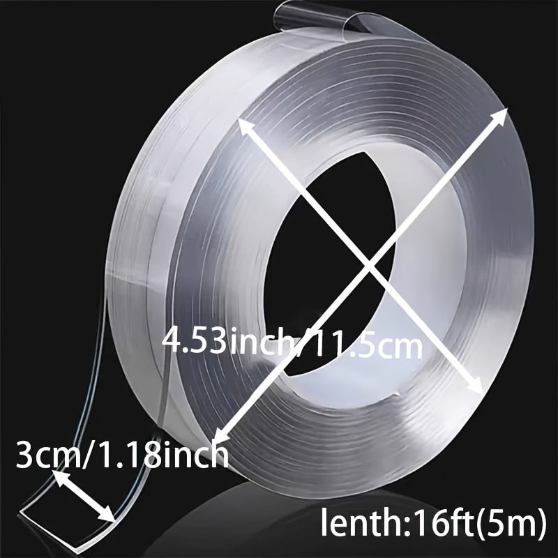 Shaffof Nano Lenta - Yuviladigan, Qayta ishlatiladigan, Ikkita tomonlama yopishqoq lenta - Nano Iz qoldirmaydigan yopishtiruvchi - O'chiriladigan Universal Disklar yopishtiruvchi