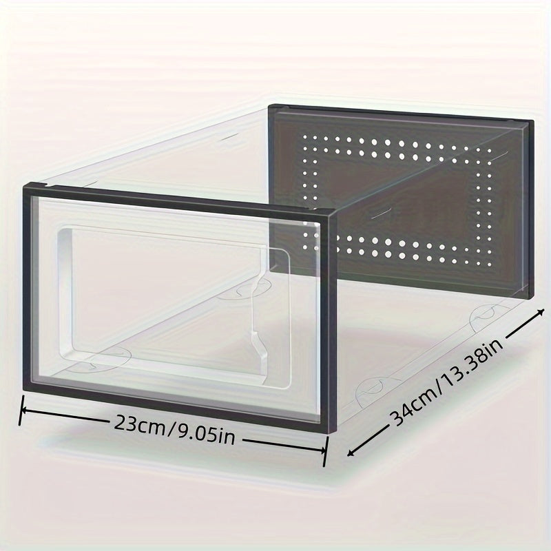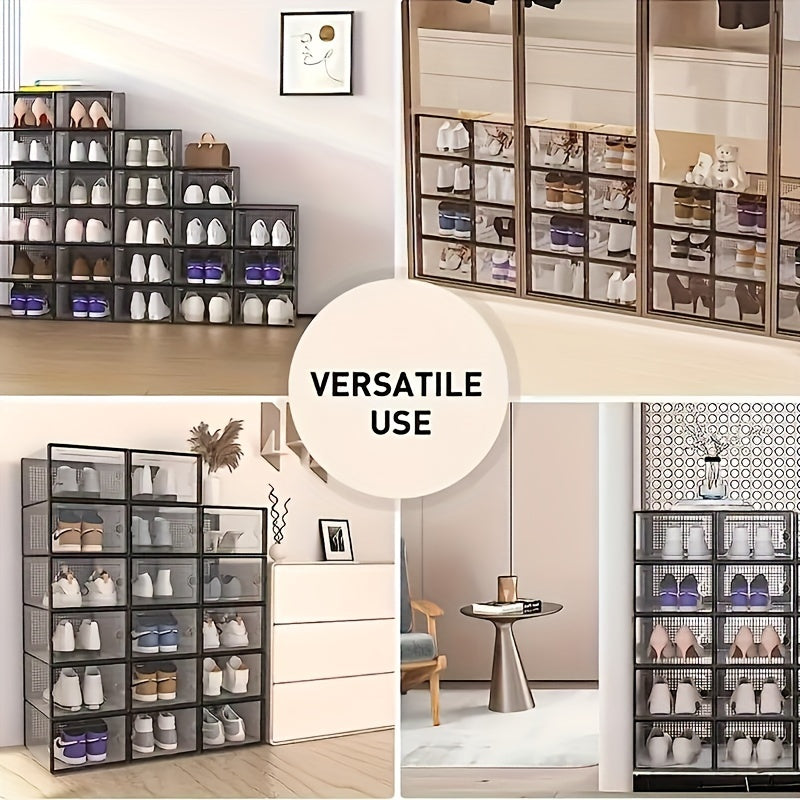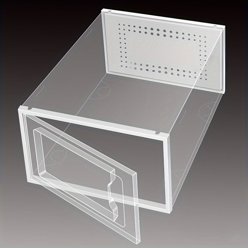 Shaffof, to'plamga joylashadigan va egiladigan poyabzal saqlash qutisi - Uy, yotoqxona yoki yotoq xonasi uchun joyni tejaydigan tashkilotchi - Oq yoki qora sport poyabzallari uchun mukammal.