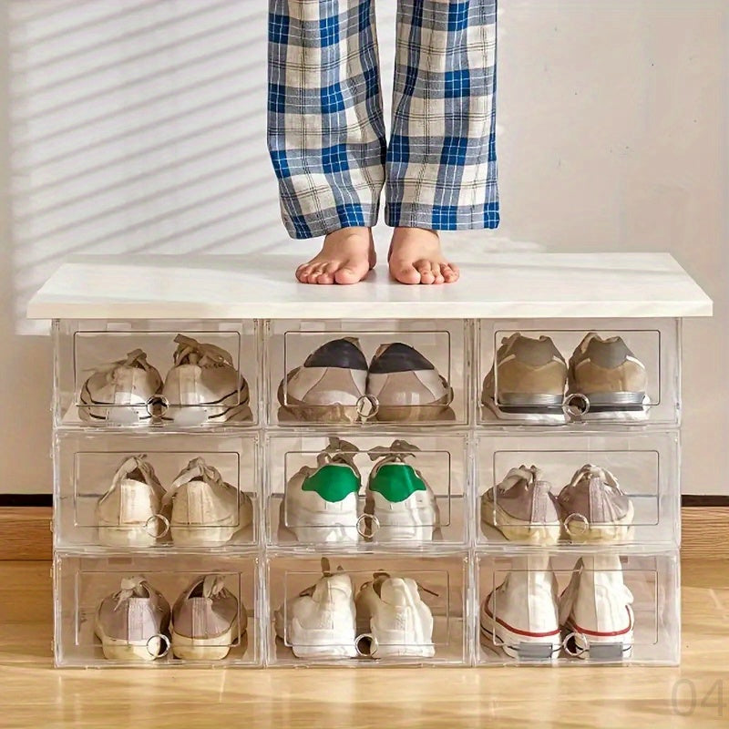 6 ta shaffof oq plastmassa poyabzal saqlash qutilari to'plami, flip-top yopilishi bilan