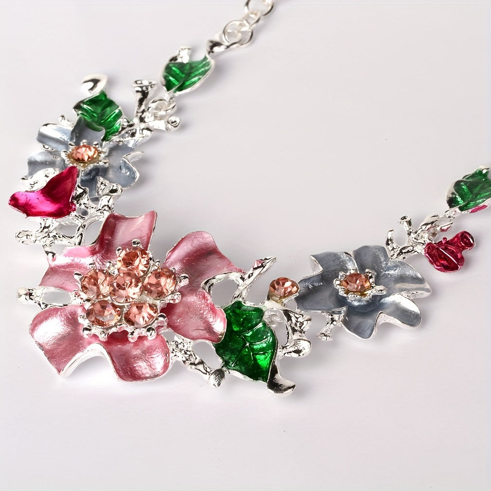 [Trending] Zarif va Shirin Zanjir To'plami, Ichida Gullar va Qimmatbaho Toshlar Bilan Bevosita Taqqoslangan Marjon va Quloq Bilaguzuk To'plami