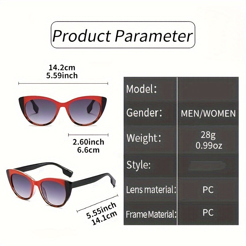 Ayollar uchun Cat Eye quyosh ko‘zoynaklari, gradient rangli blok ramka va anti-yorqinlik linzalar bilan