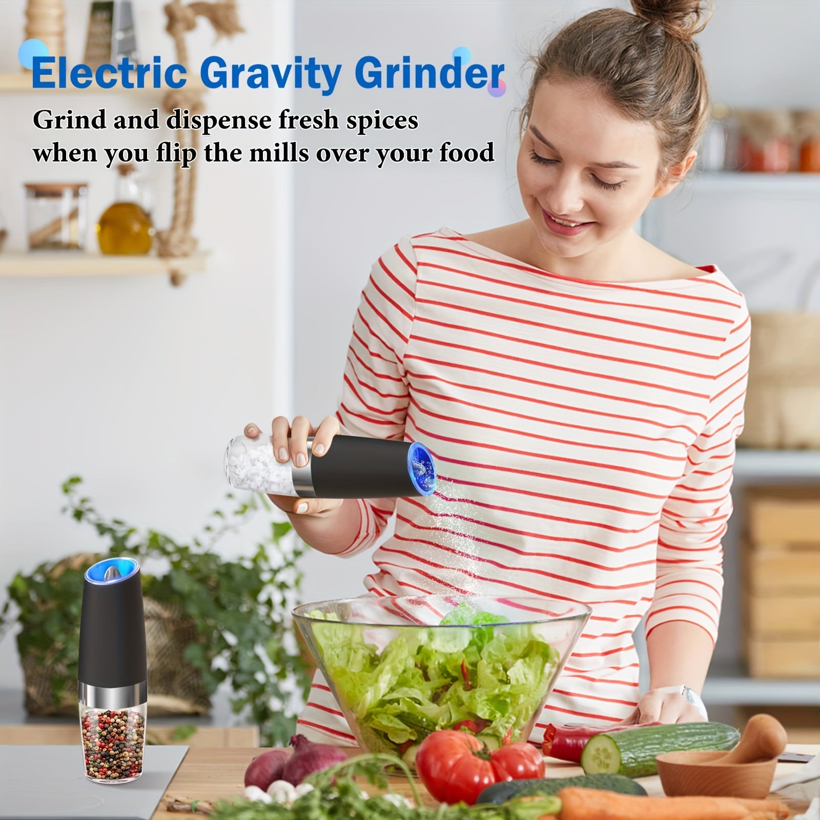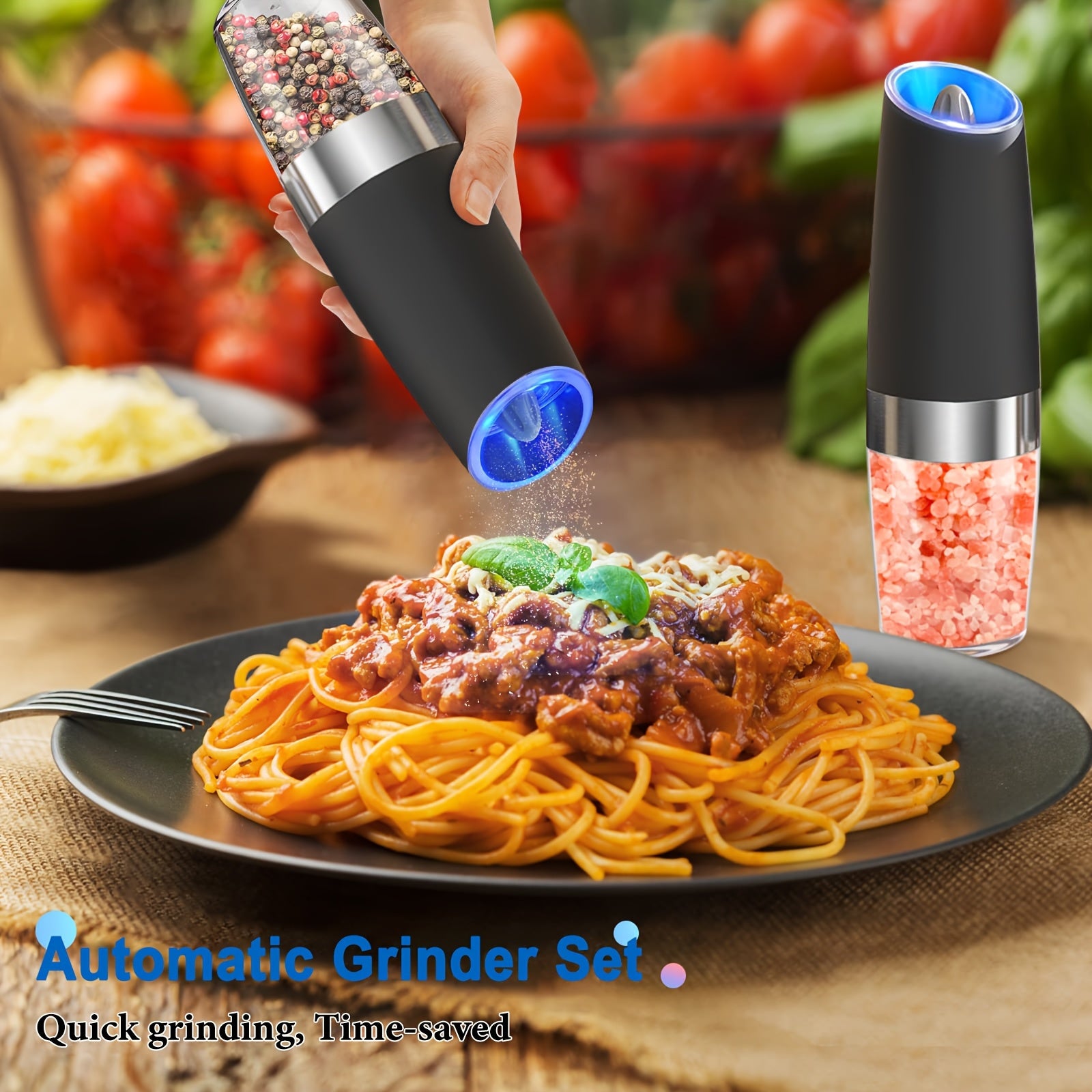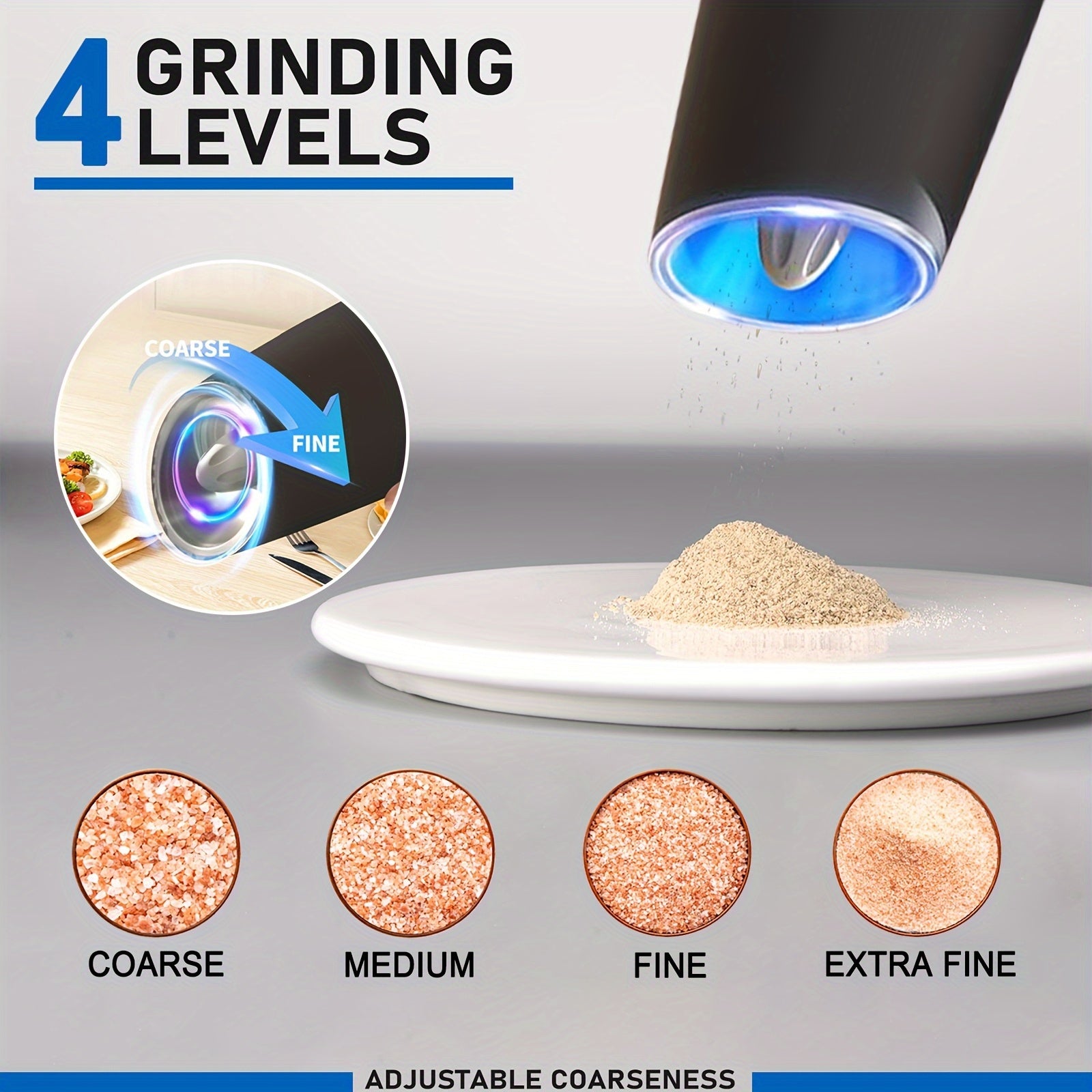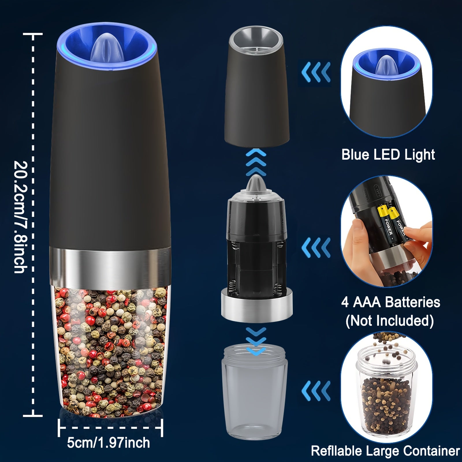 Ikki taqsimli elektr pechene va tuz maydalagich to'plami, sozlanadigan qattiqlik bilan, batareyali, LED chiroqlar, bitta qo'l bilan boshqarish, katta hajmli, yuviladigan, qora - Sevgililar kuni sovg'alariga ideal.