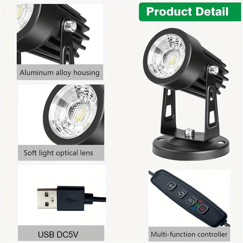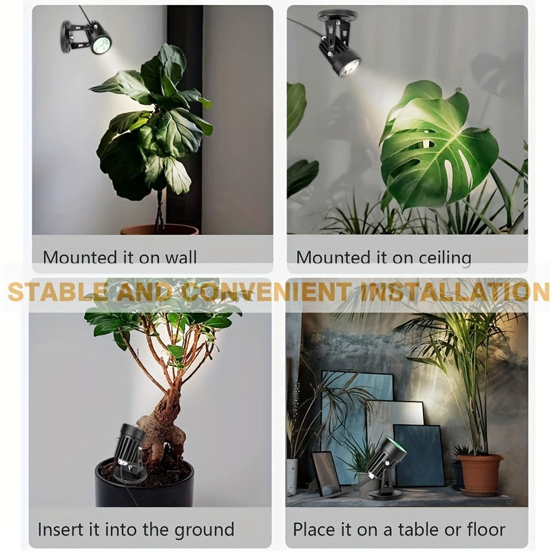 O'simliklar va san'at asarlari uchun sozlanadigan rang harorati, dimmer funksiyasi va timerga ega 5W LED ichki uplightlarning ikki to'plami.