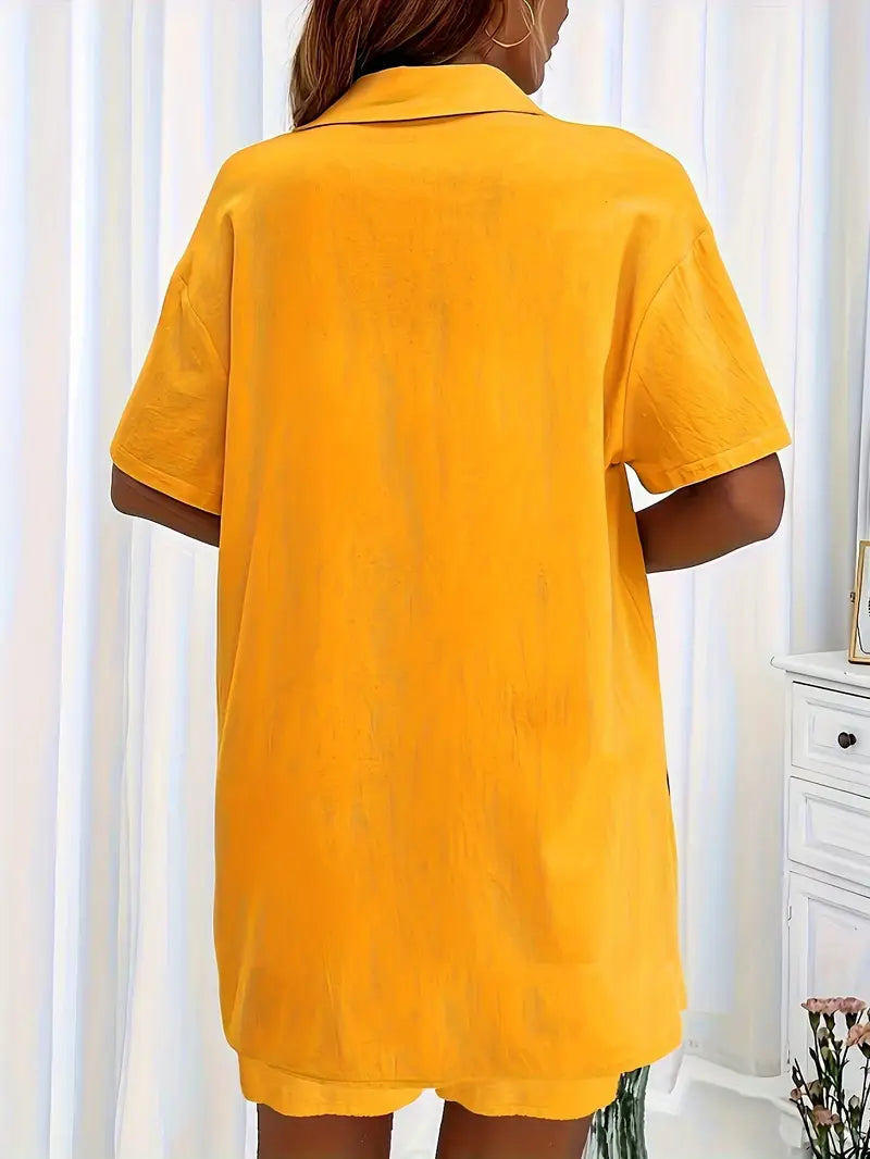 Ikki qismli to'plam: Ayollar uchun bir rangli ko'ylak va cho'ntakli, bog'ichli shortlar