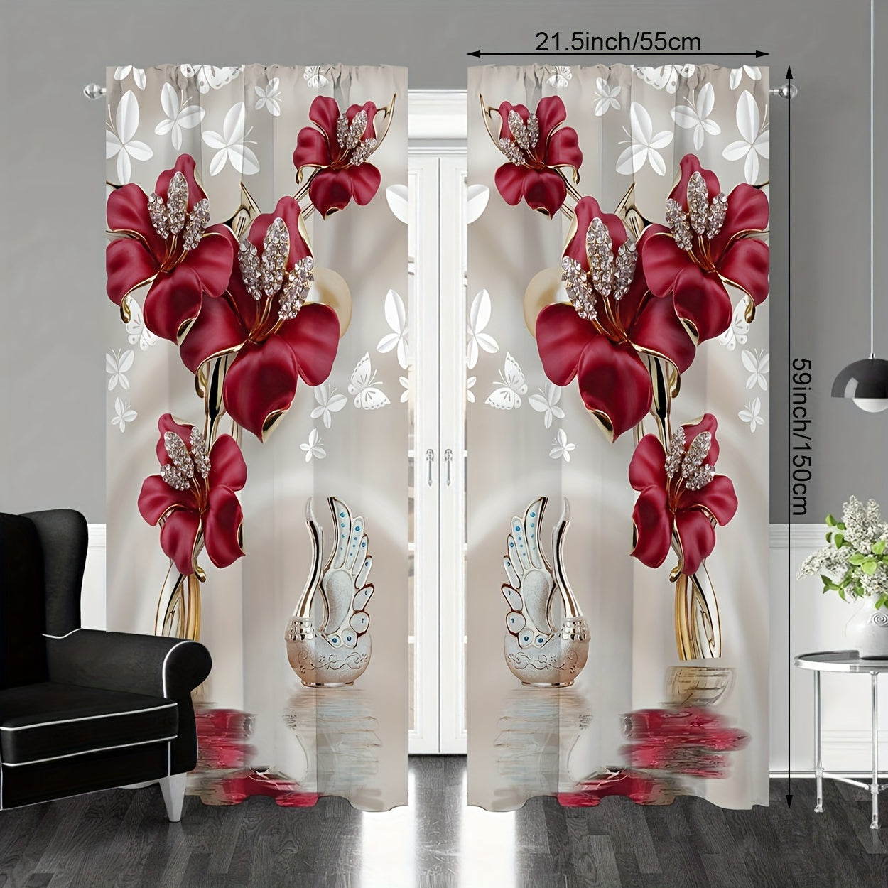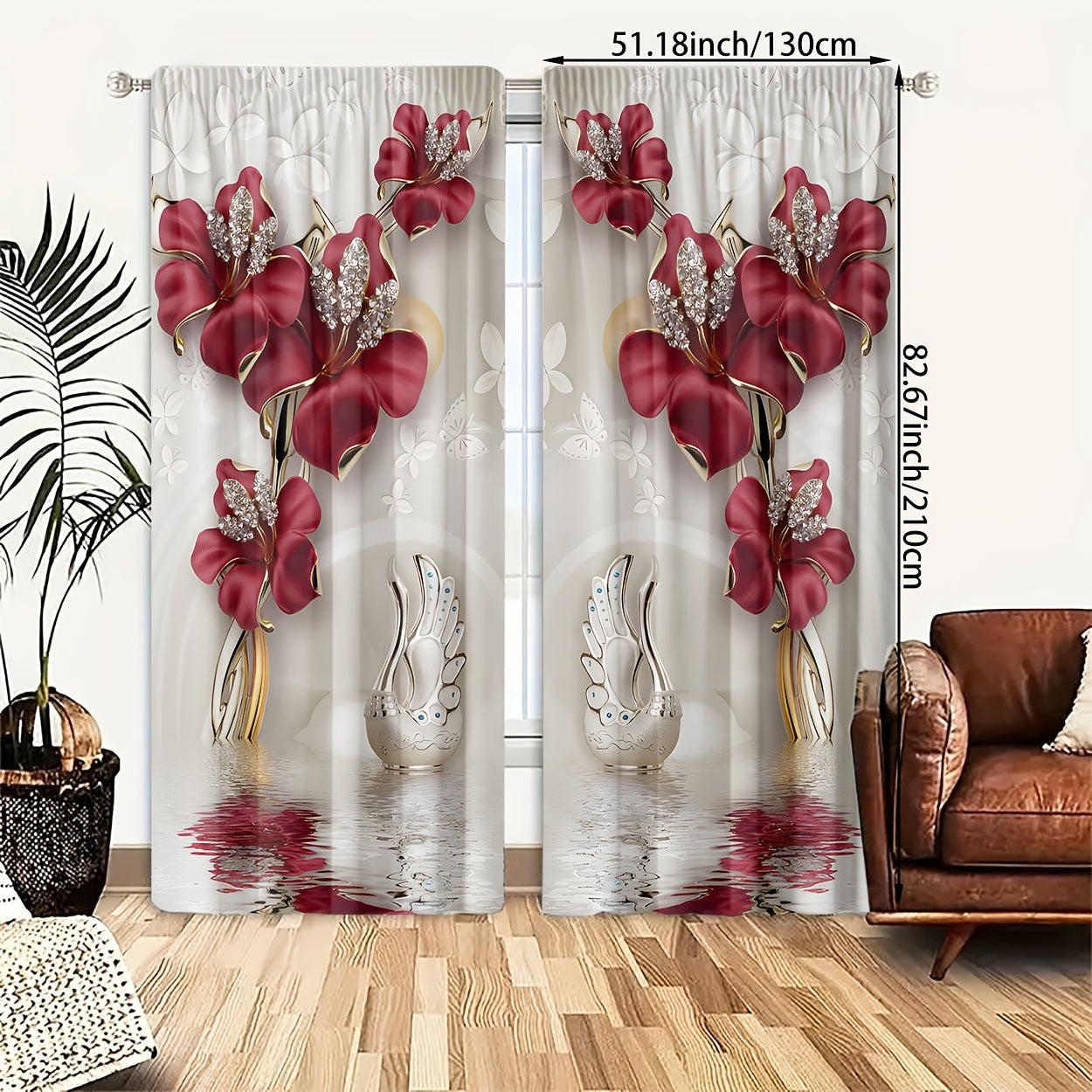 Ikki dona gullar bilan bosilgan pardalar, deraza uchun rod pocket dizayni bilan, yotoqxona va yashash xonasi derazalari uchun mukammal. Uy bezatish va xona dekoratsiyasi uchun ideal.