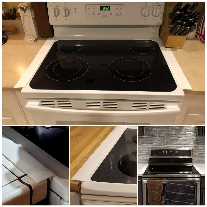 Ikkita silikon pechka bo'shliqlarini qoplovchi, issiqqa chidamli va tozalash uchun oson. 53.34/63.5/76.2 sm o'lchamdagi joylar uchun mos, bu qopqoq oshxona stollari va pechka ustida to'kilishlardan himoya qilish uchun ishlatilishi mumkin. Qora, oq va