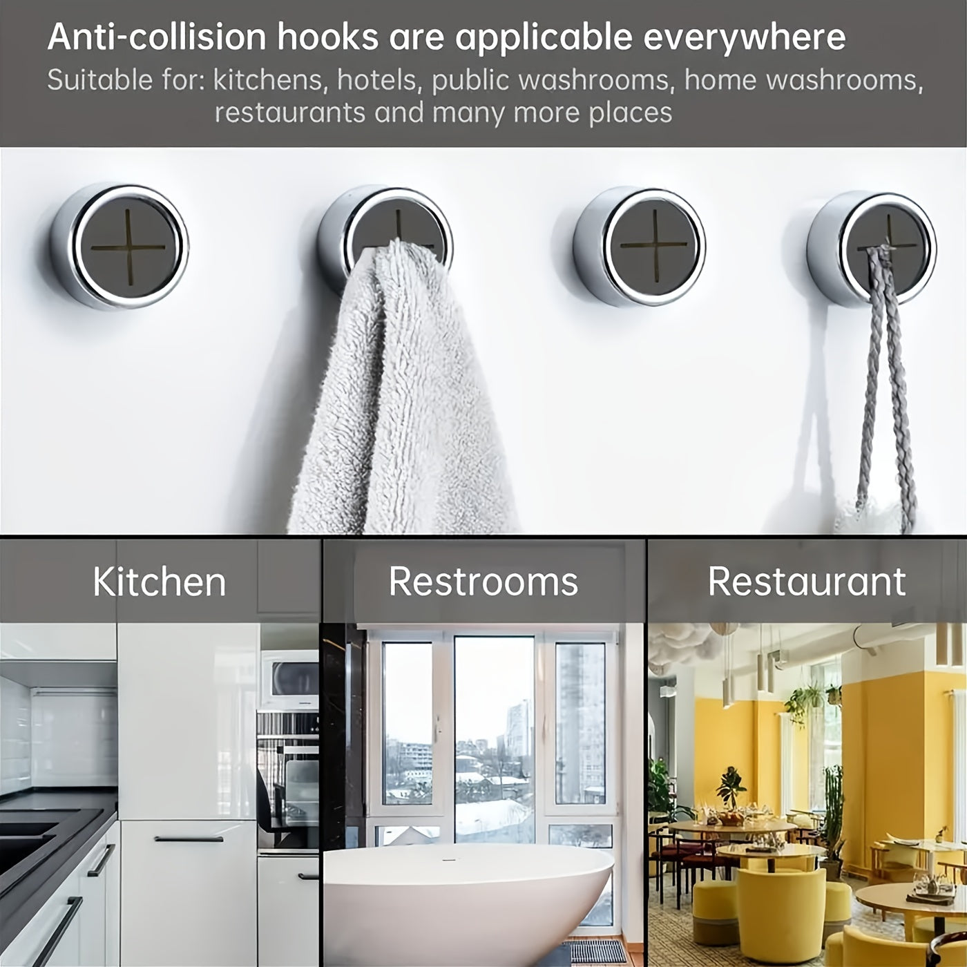 Ikki dona dumaloq o'z-o'zidan yopishadigan sochiq tutgichlari, hammom uchun, qo'l va idish sochiqlari, burg'ulash shart emas.