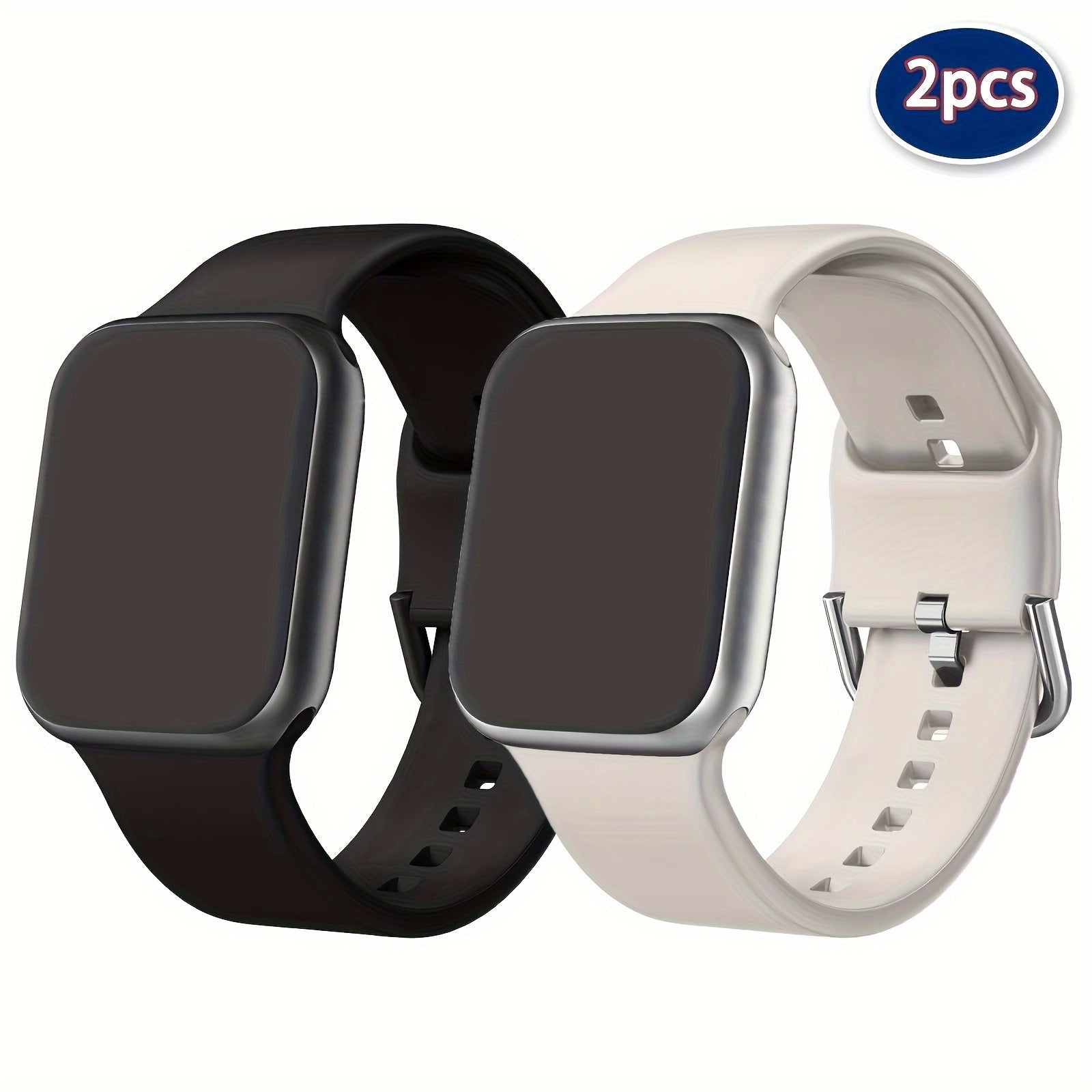 Ikki yumshoq silikon sport soat bilaguzuklari Apple Watch uchun qora va oq ranglarda, suv o'tkazmaydigan va sozlanadigan, iWatch Ultra, SE, Series 1-9 (38mm-49mm) bilan mos keladi. Erkaklar va ayollar uchun mos.