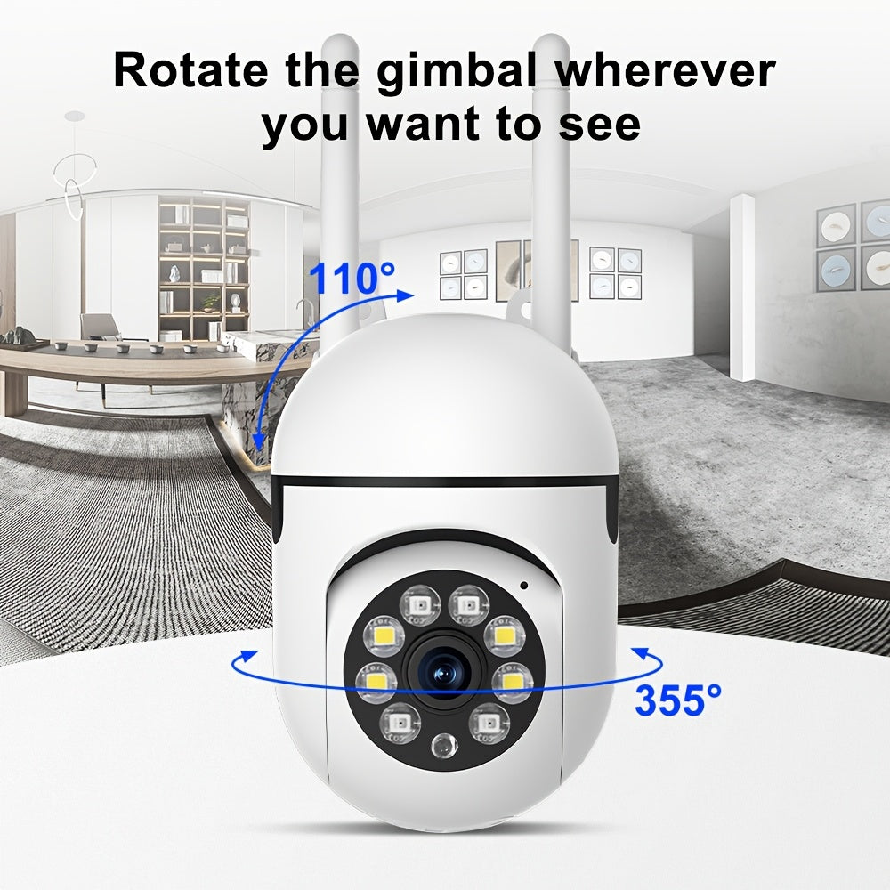 Ikki oq 1080P HD xavfsizlik kamerasi, ikki diapazonli WiFi, avtomatik kuzatuv va rangli tungi ko'rish xususiyatlari bilan - uy xavfsizligi uchun aqlli ichki/tashqi kuzatuv tizimi
