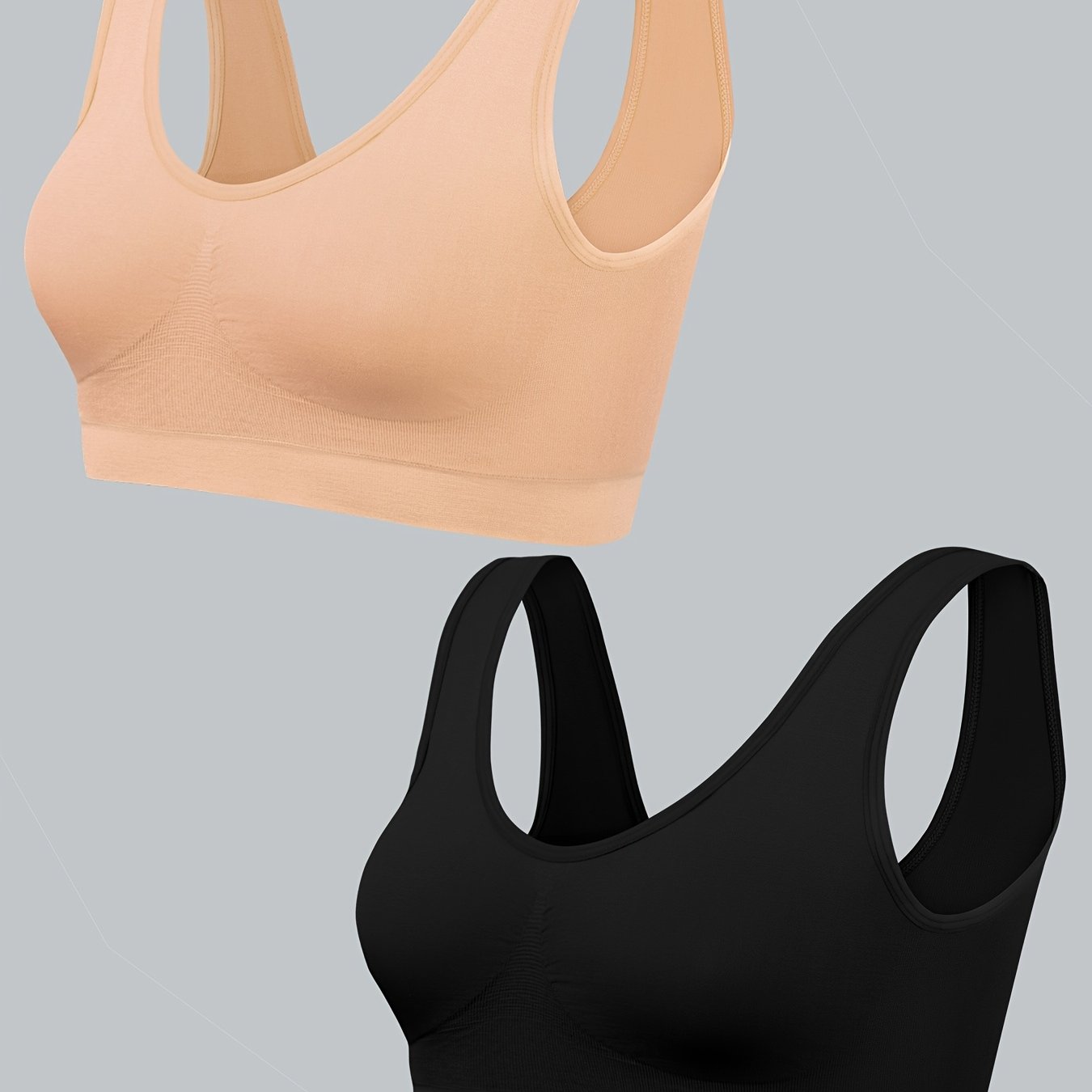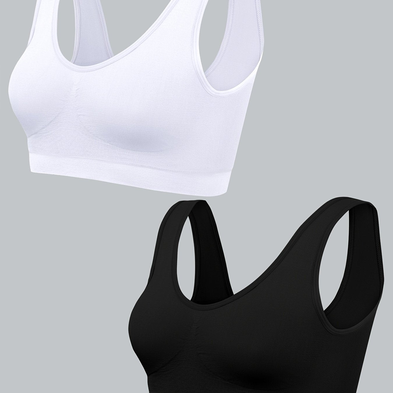 Ikki ayolning tikuvsiz, yuqori elastik sport brasslari mustahkam rangli poliamid to'qima matosidan tayyorlangan. Yuqori qo'llab-quvvatlashni taklif qiladi va ichki to'ldiruvchi qismni o'z ichiga olmaydi. Katta yoshdagi sport faoliyatlari uchun juda mos.