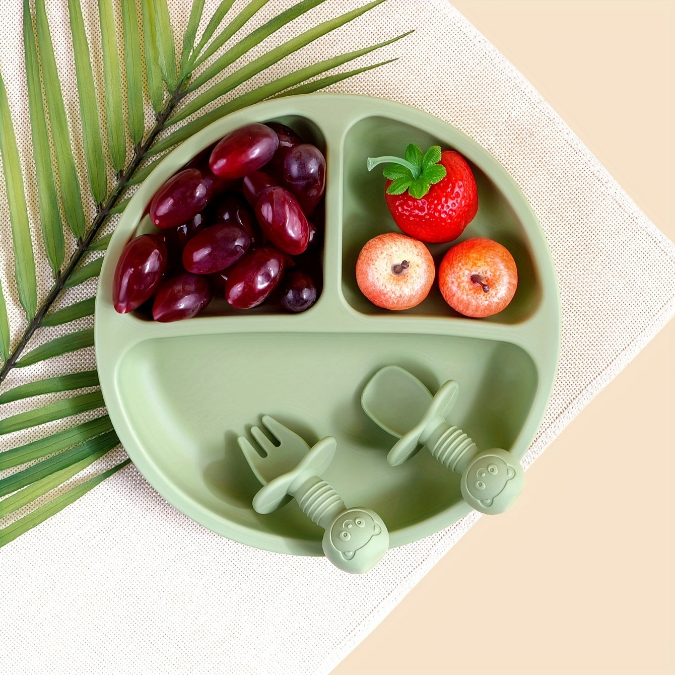 Silicone bolalar ovqatlantirish to'plami bo'linadigan plastinka bilan, BPA-free, bolalar uchun boshqariladigan ovqatlantirish uchun