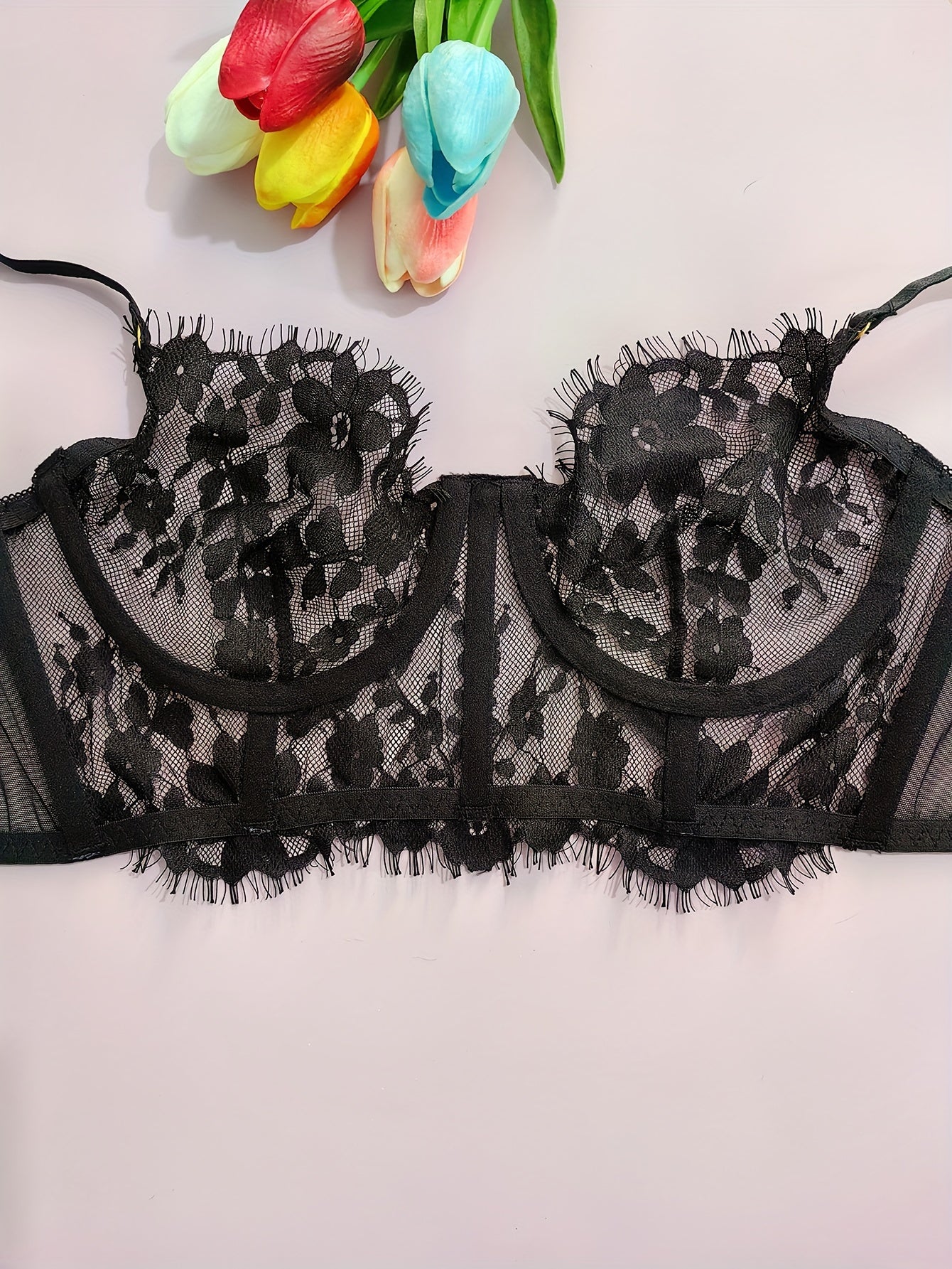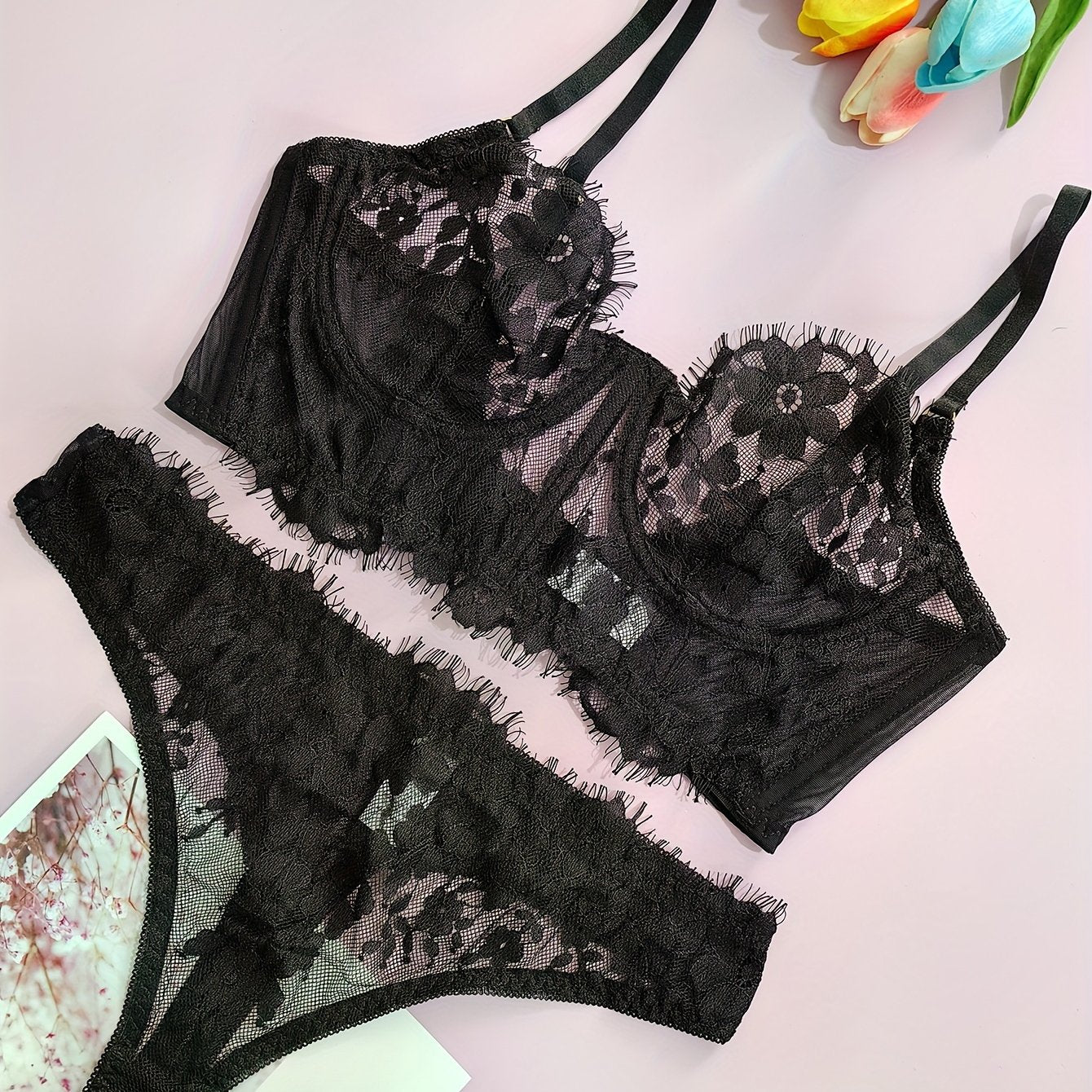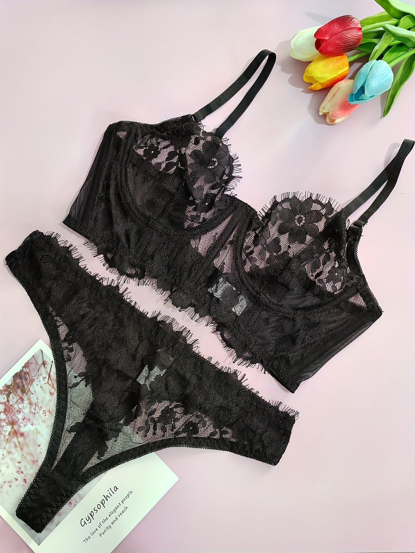 Ultra-ingich va jozibador fransuz dantelli ichki kiyim to'plami.