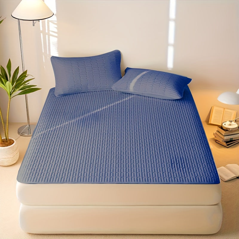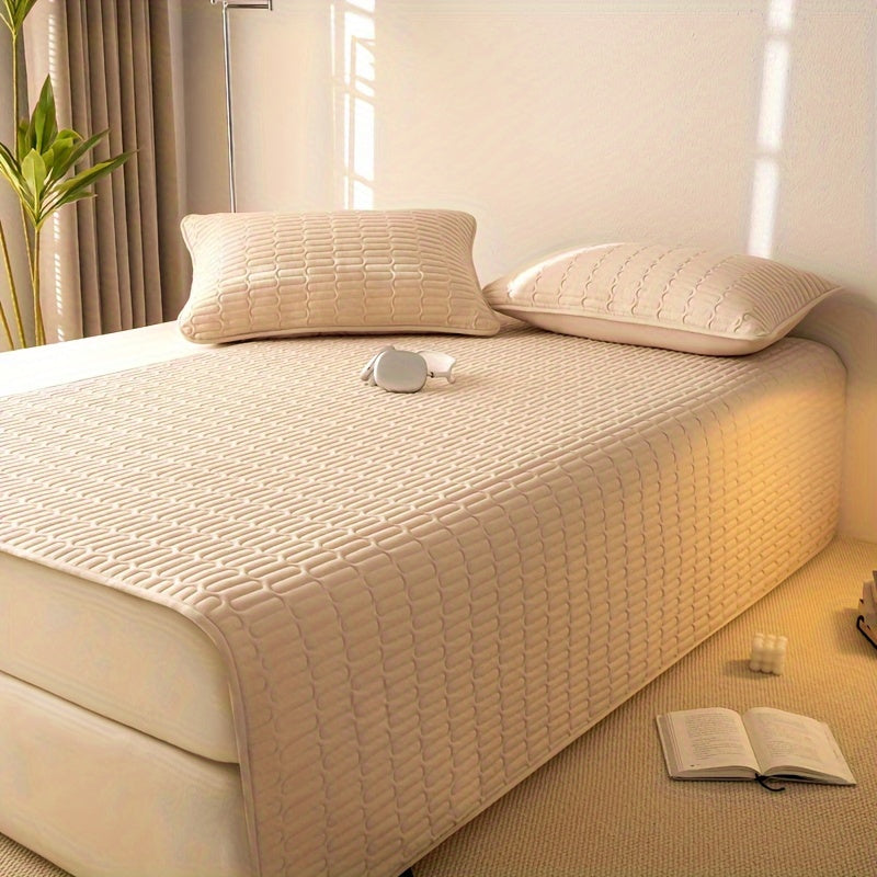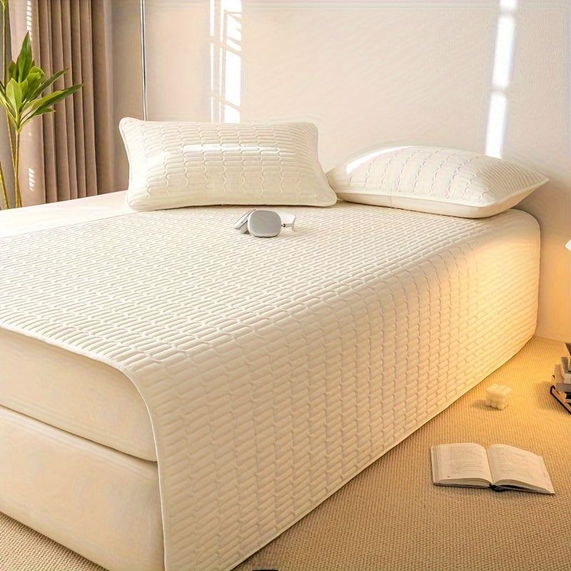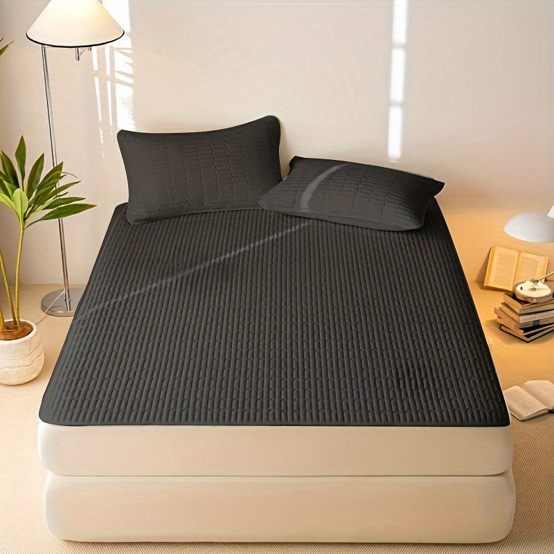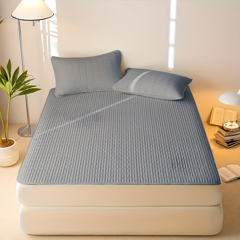 Ultra-ingichka matras qoplamasi, suv o'tkazmaydigan himoya bilan - zamonaviy bir rangli dizayn, yotoqxona va yotoq xonasi uchun ideal, bir kishilikdan ikki kishilik yotoqlarga mos, qo'l bilan yuvish tavsiya etiladi - yostiq qopqog'i alohida sotiladi
