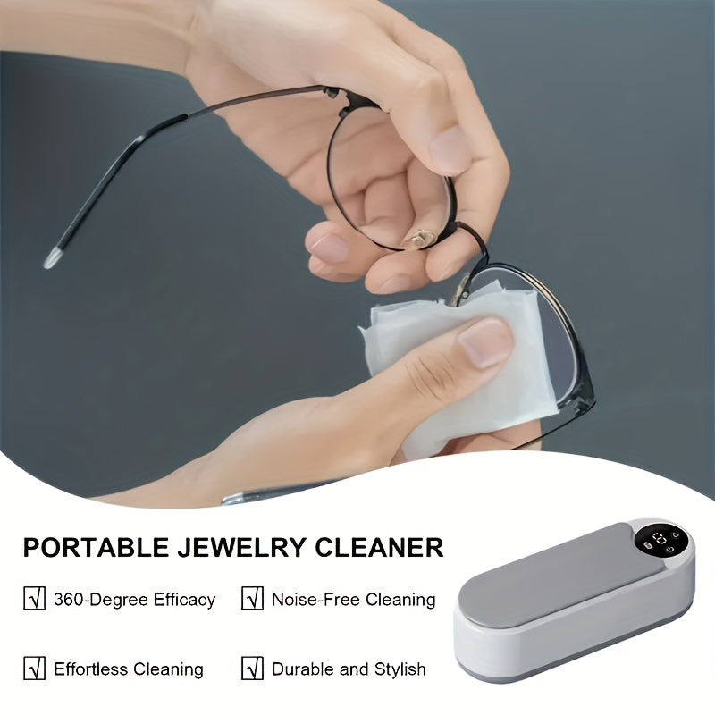 Akumulyatorli litiy batareyasi va vibratsion dog'larni olib tashlash texnologiyasiga ega ultratovushli tozalash mashinasi ko'zoynaklar, zargarlik buyumlari, soatlar va tish ushlagichlari uchun.