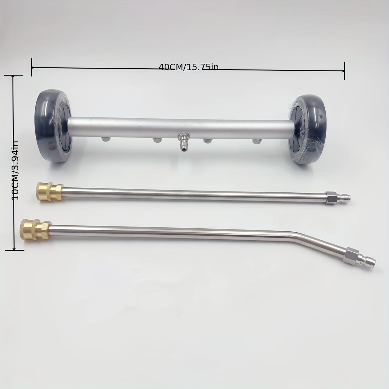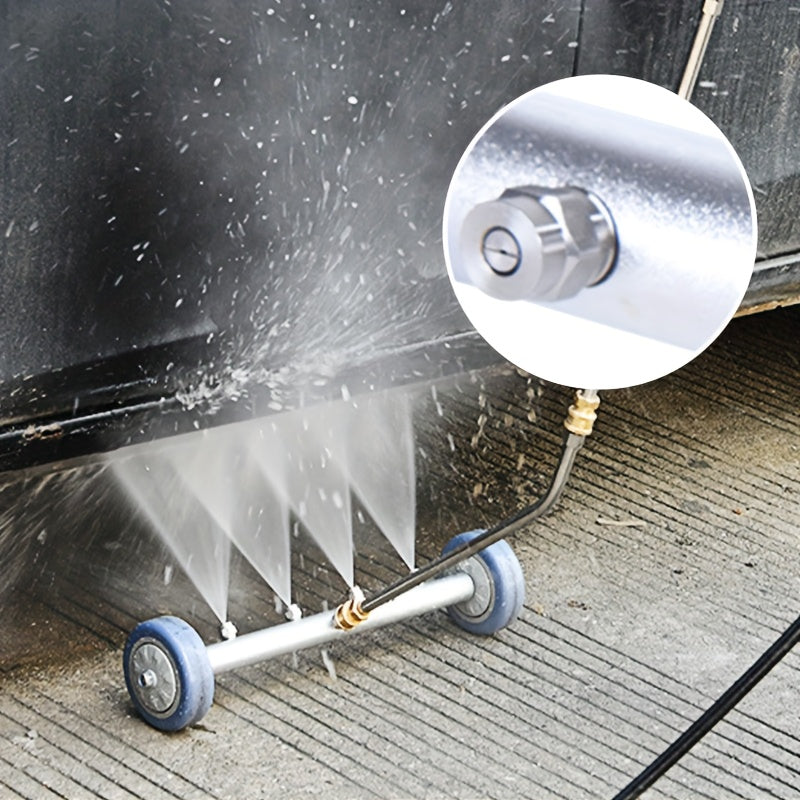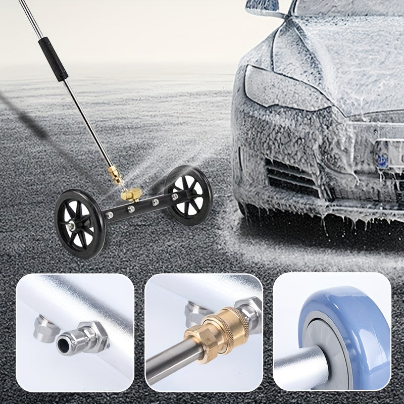 Ko'p funksiyali pastki qismni tozalovchi, 4 ta nozzle, shassi tozalash cho'tkasi va ochiq havoda avtomobil polini tozalash vositasi bilan birga keladi. Qo'lda ishlaydi, elektr yoki batareyalar talab qilinmaydi.