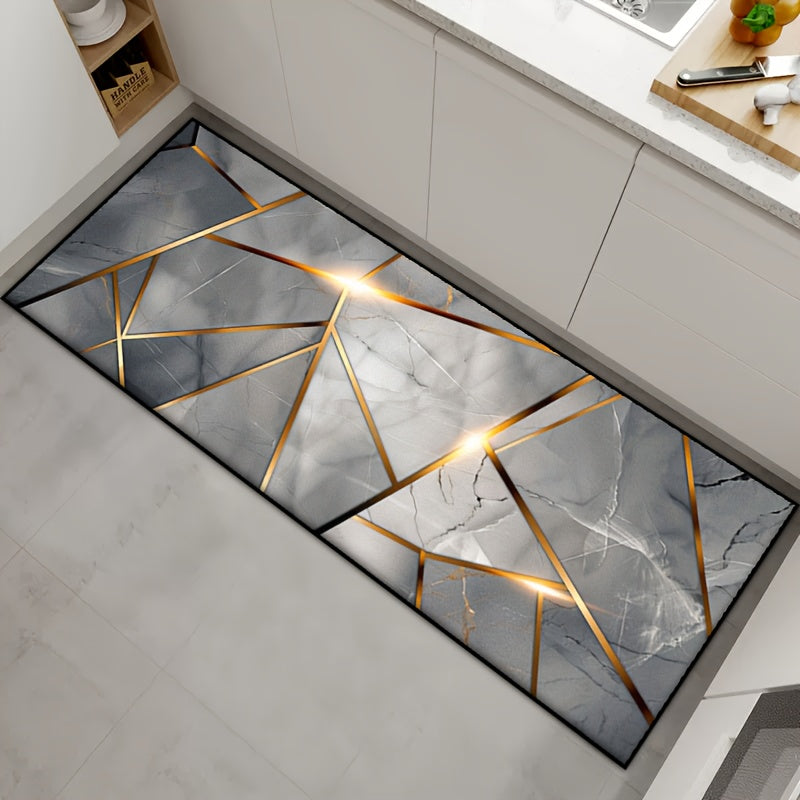 Yagona marmar naqshli gilam, yashash xonasi, yotoqxona, koridor, kir yuvish xonasi, balkon va oilaviy koridor uchun mos. Slidga chidamli va mustahkam, oson parvarish uchun mashinada yuviladi. Zamonaviy san'at dizayni har qanday joyga stil qo'shadi.