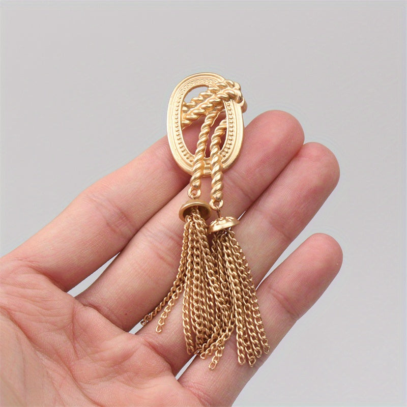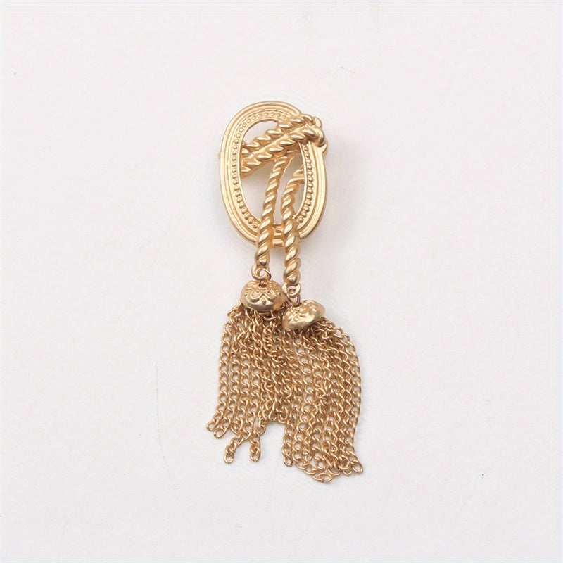 O'ziga xos Vintage Alloy Brooch Pin, Fringe Dizayni bilan - Ayollar uchun Qiziqarli Moda Aksessuari, Mat Gold Tassel Tafsilotlari bilan, Mukammal Yaratilish Hediye