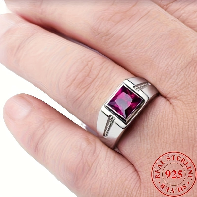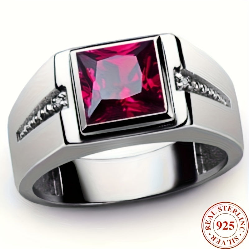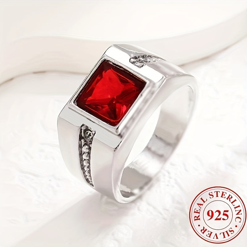 Unisex 925 Silver Punk uzuk, Qizil va Yashil toshlar bilan, Kvadrat sun'iy zirkoniya kristall dizayni, Juftlar uchun mukammal.