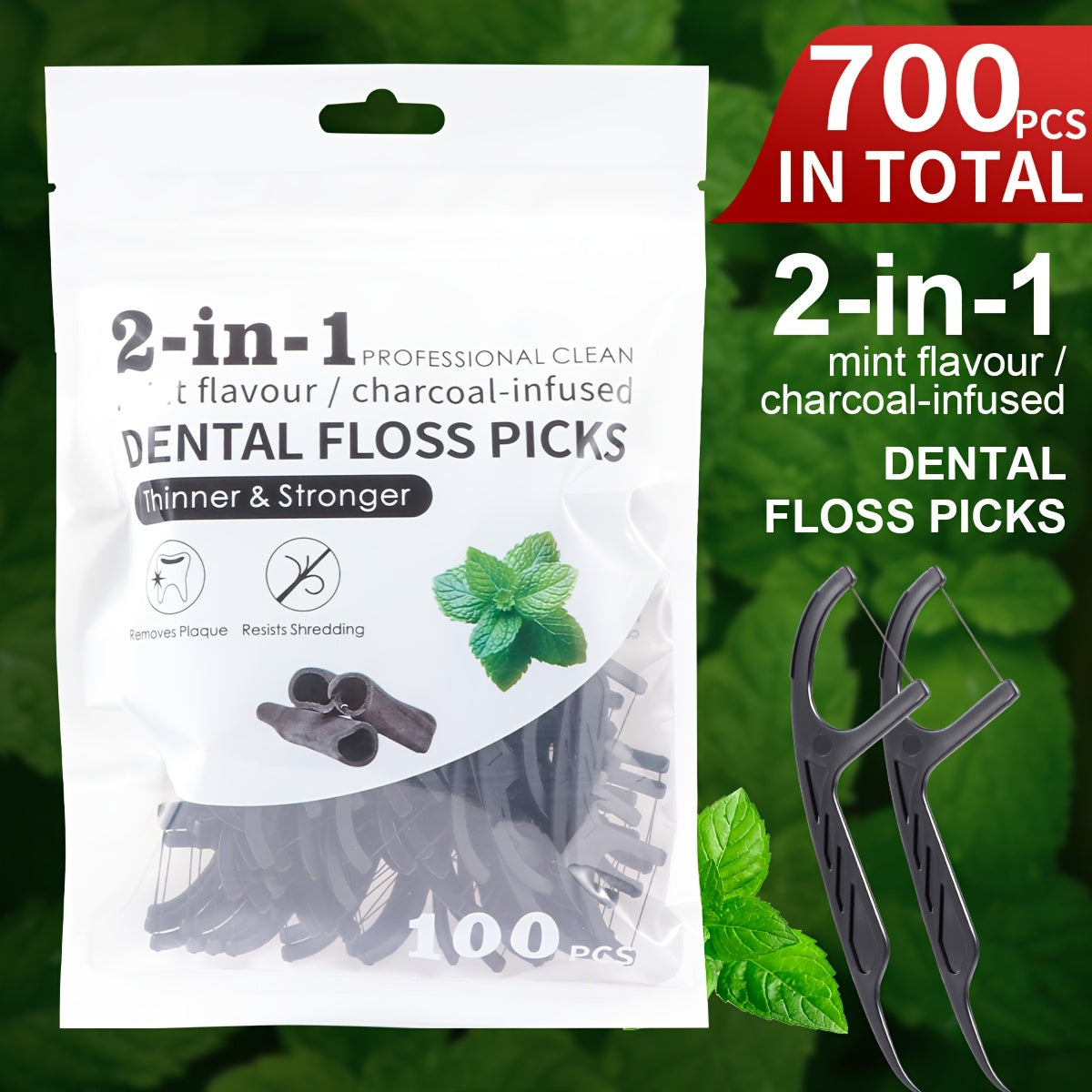 Uniseks bambuk ko'mirli tish ipi tanlovi, kesilmaydigan chiziq, kattalar uchun sayohat
