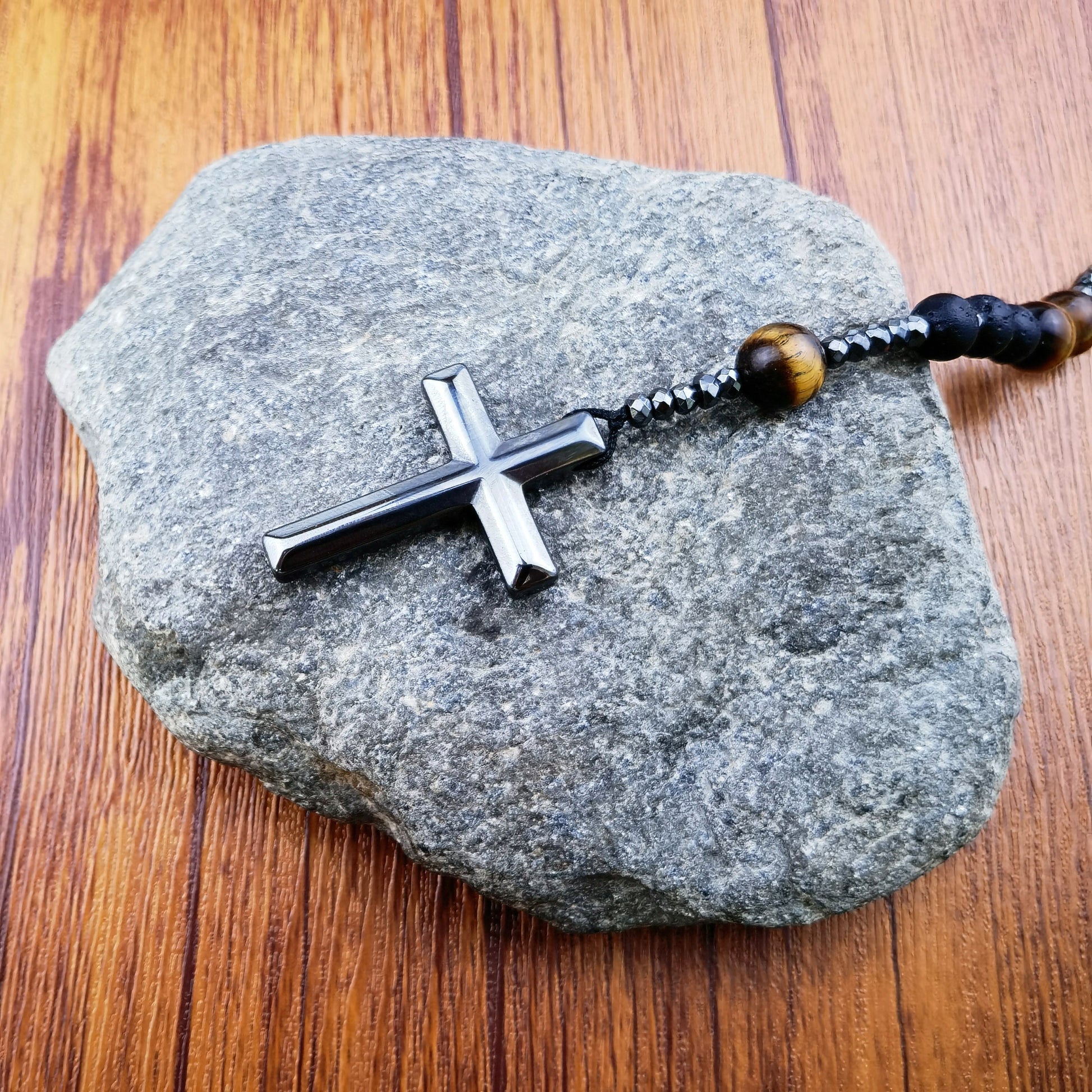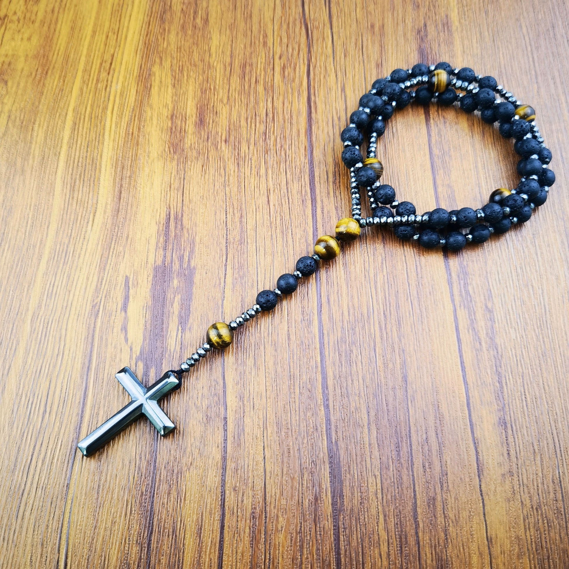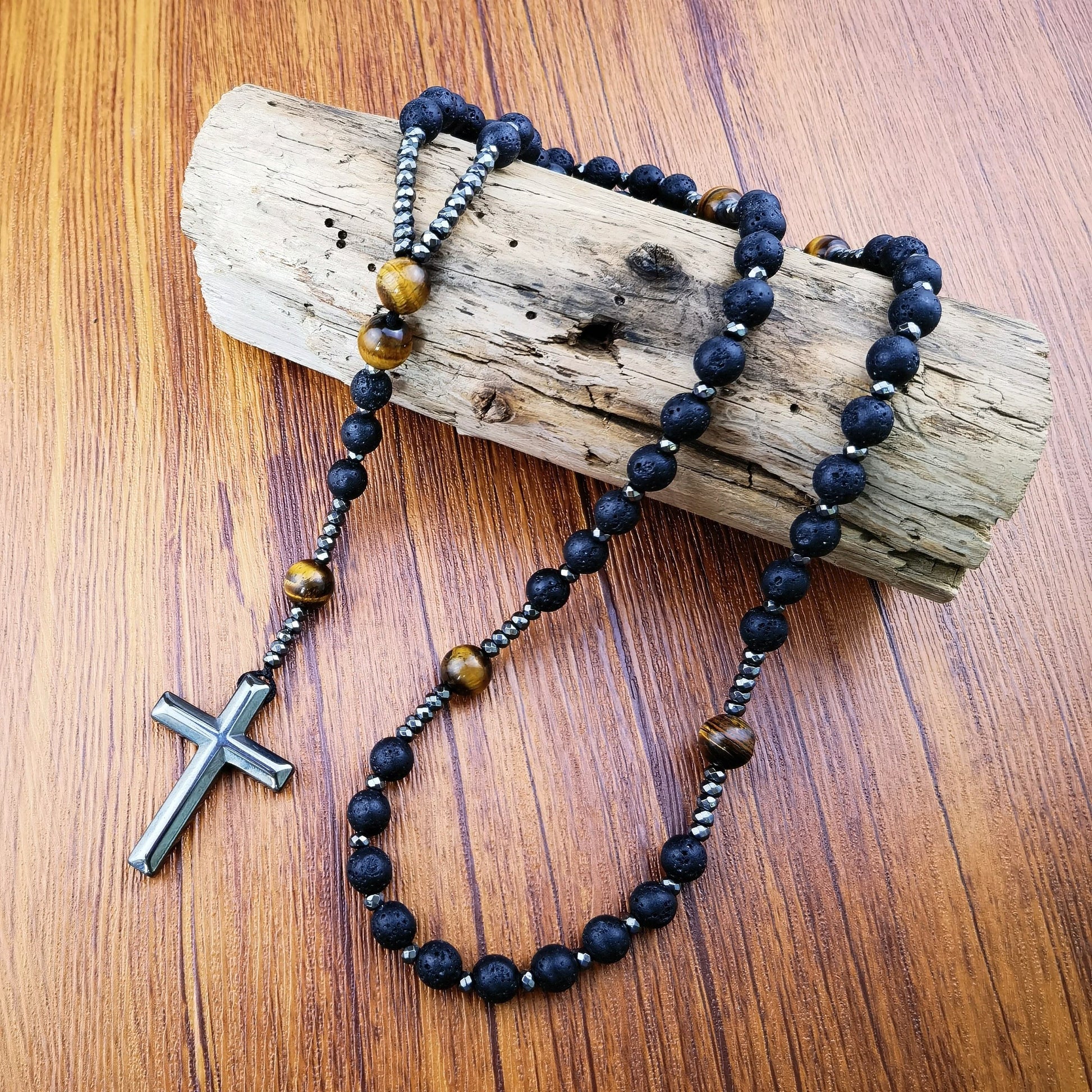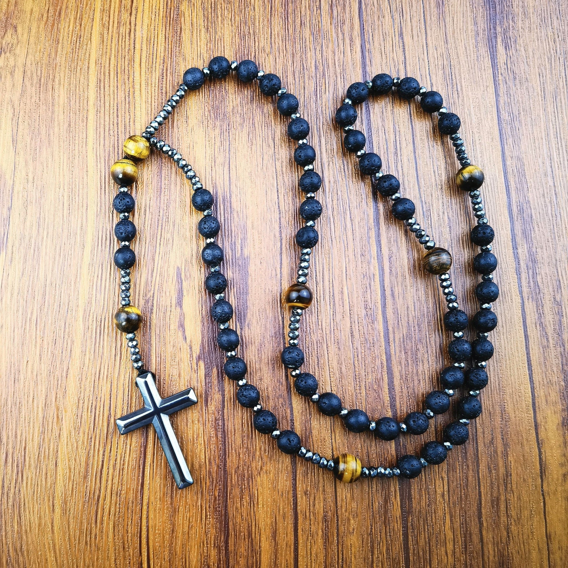 Uniseks qora lava toshi, bengal ko'zli, hematitli rasmli taqinchoq, zargarlik buyumlari