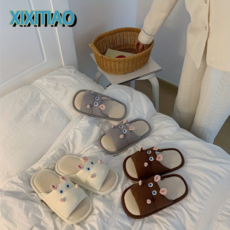 Uniseks linen shippirlari yumshoq taglikli ichki uy poyabzalari chiroyli hamster dizayni