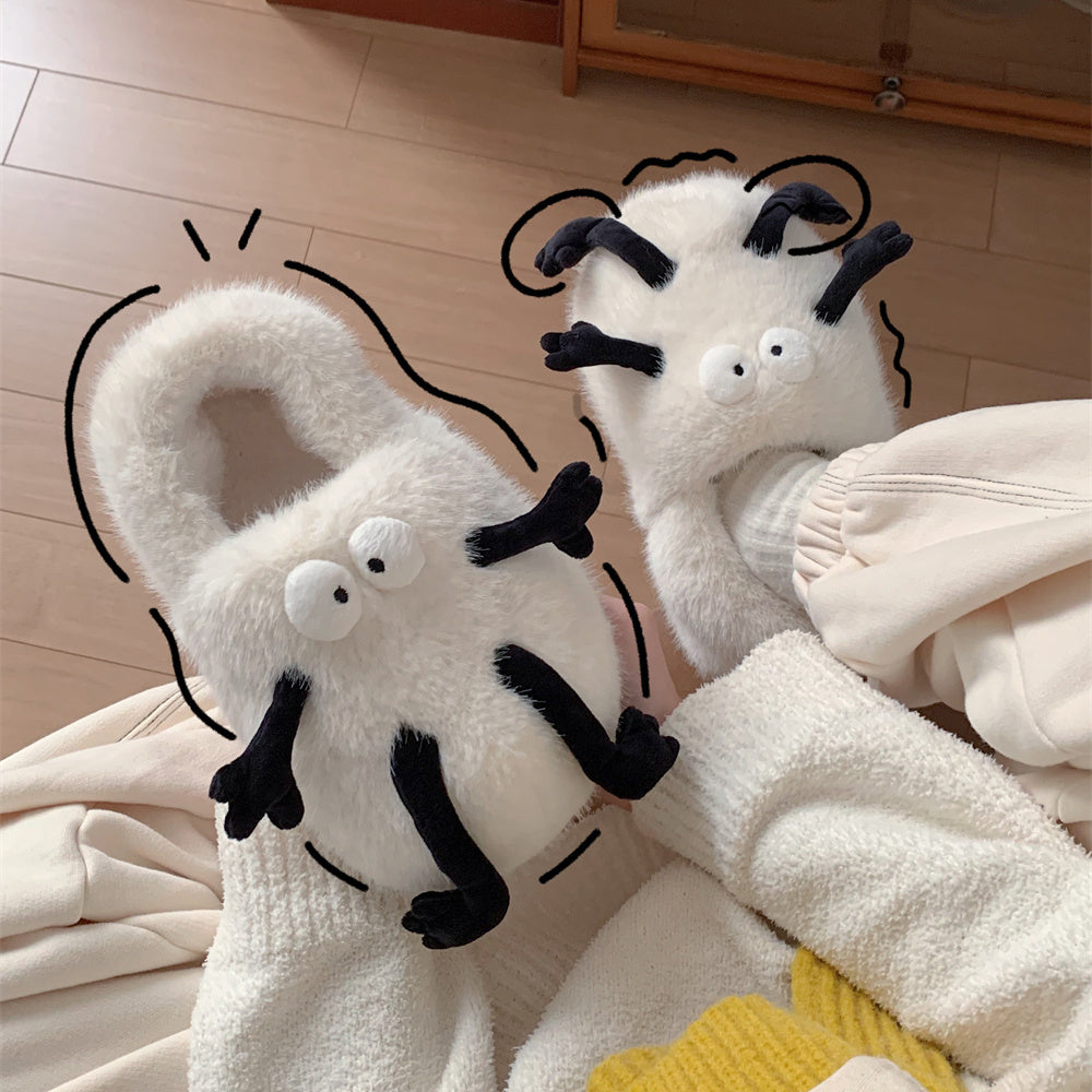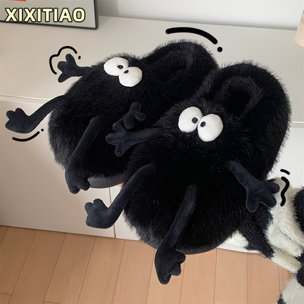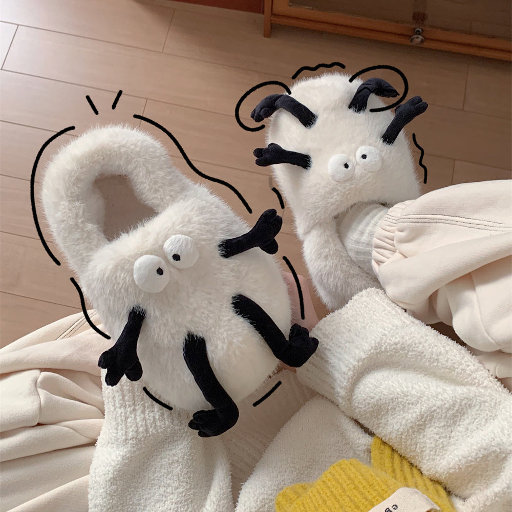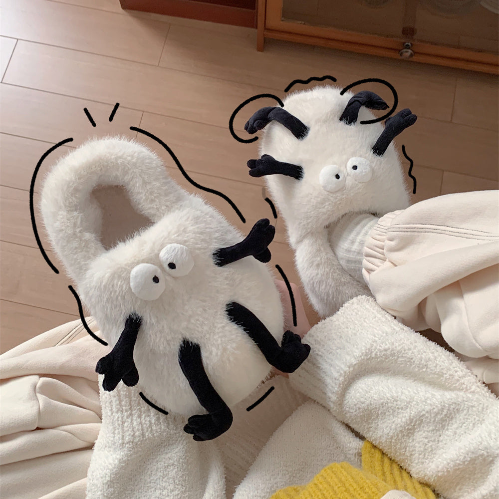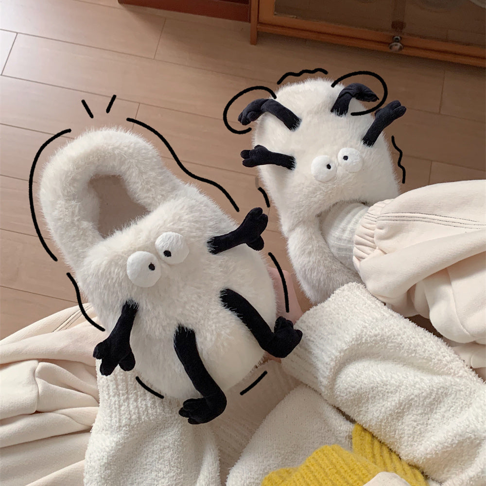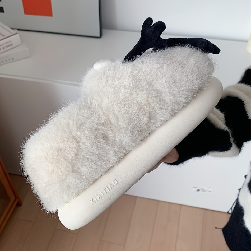 Uniseks peluş multfilmli mo'ynali yopish uchun uy ichki chanoq poyabzal, sirpanmaydigan, yumshoq taglik