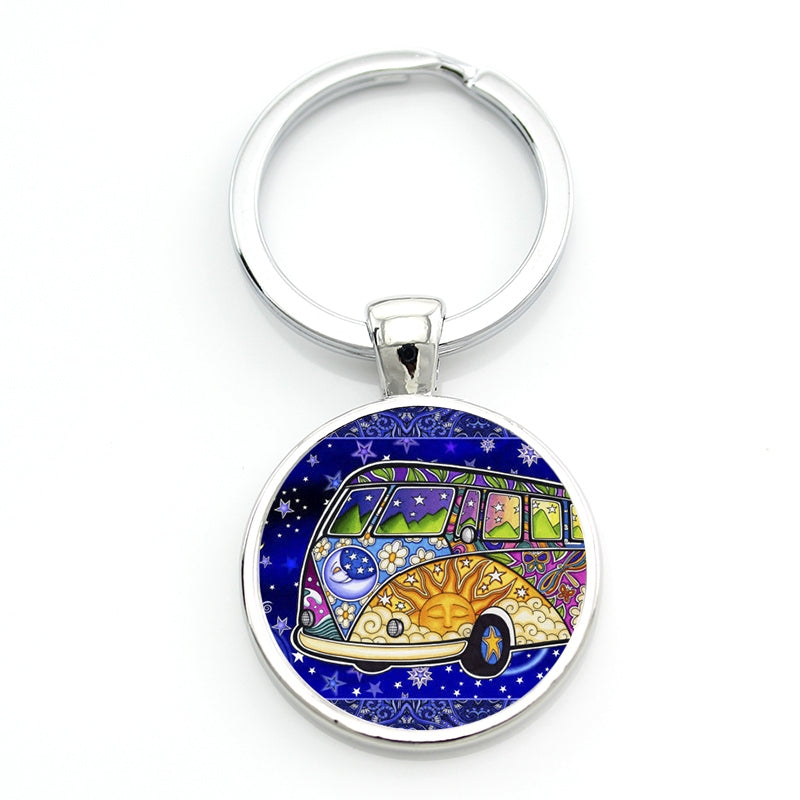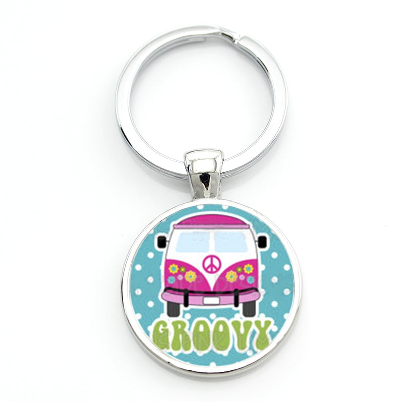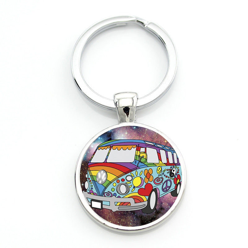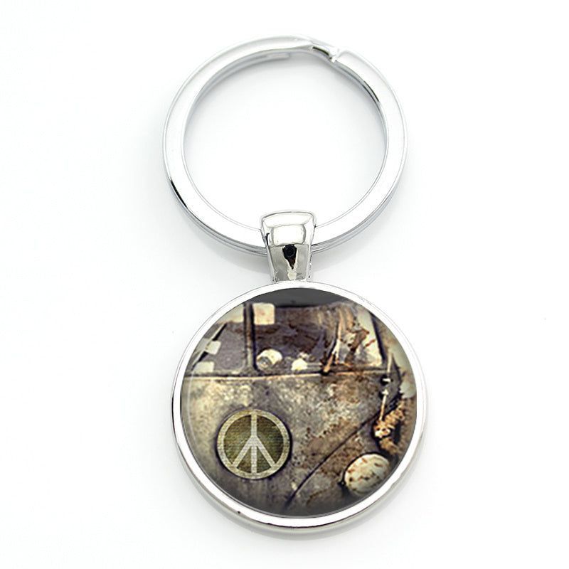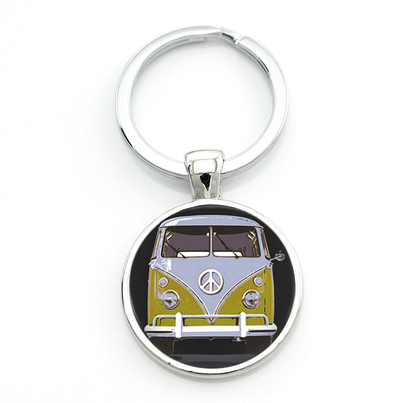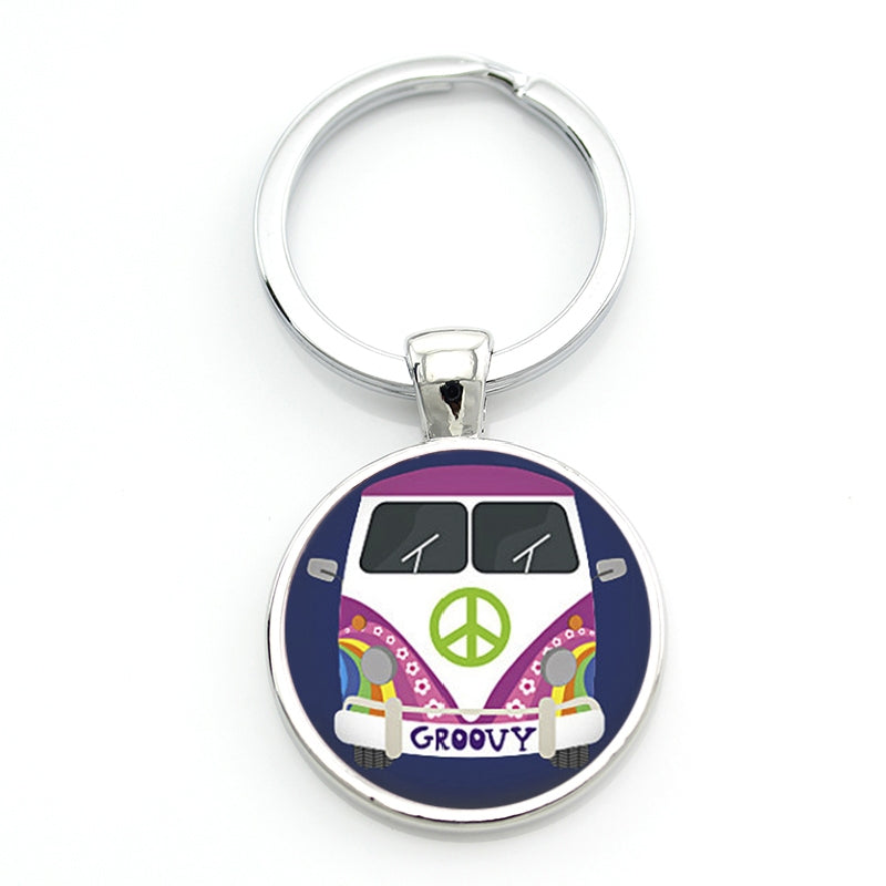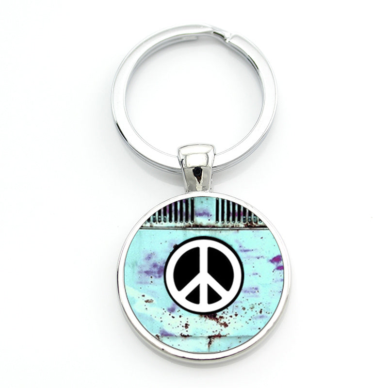Uniseks Vintage Hippie Tinchlik Belgisi Van Kalit zanjiri sumkalar va avtomobil aksessuarlari uchun