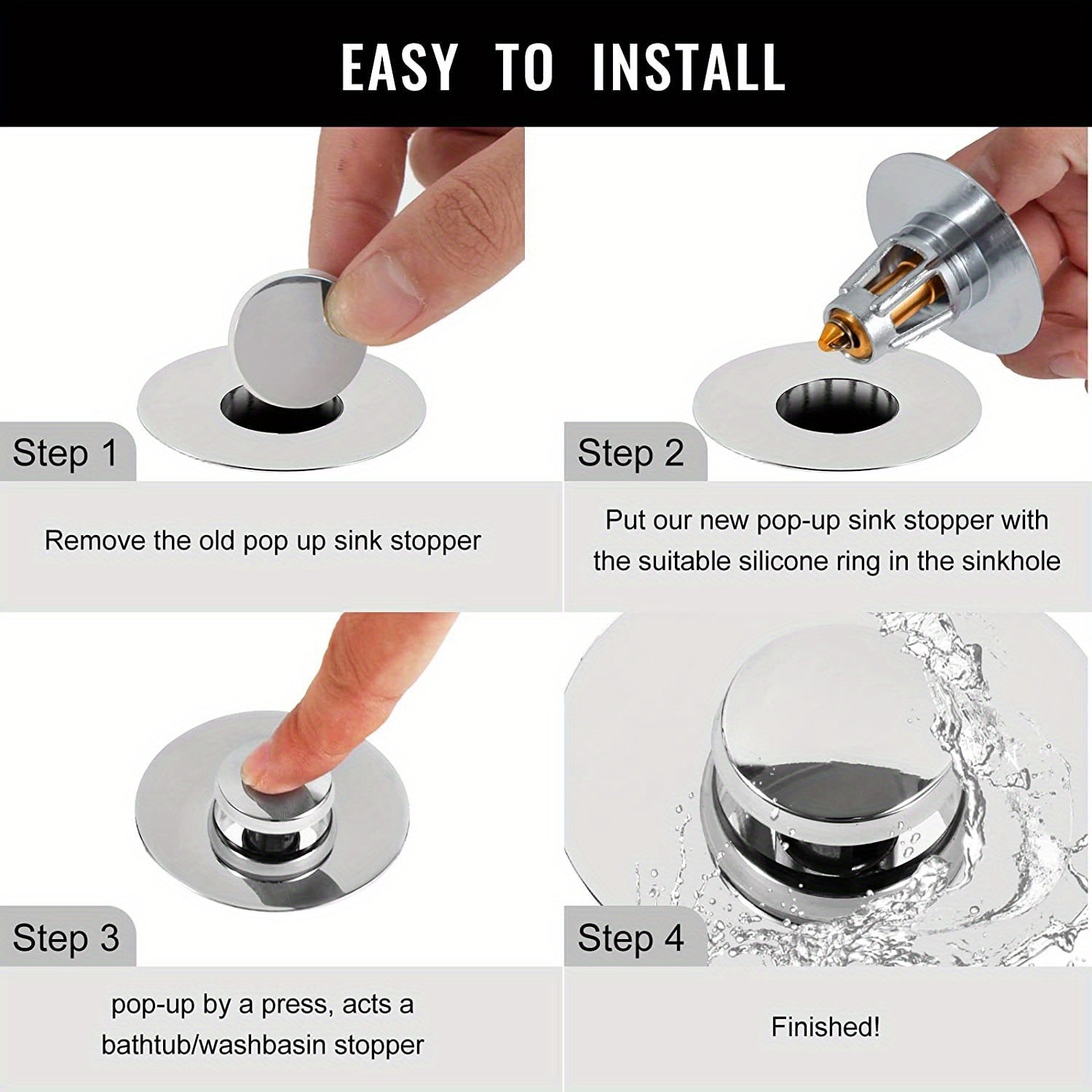 Vannaxonani yopadigan to'siq, 1.06-1.80 dyuymli quvurlar uchun, pop-up filtri va sochlarni ushlovchi bilan