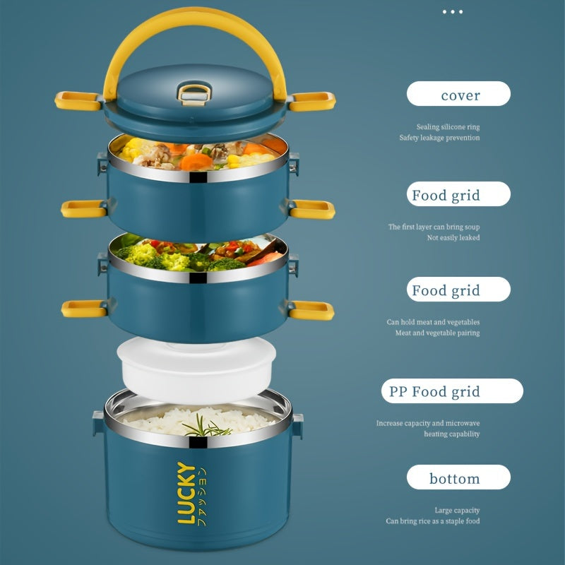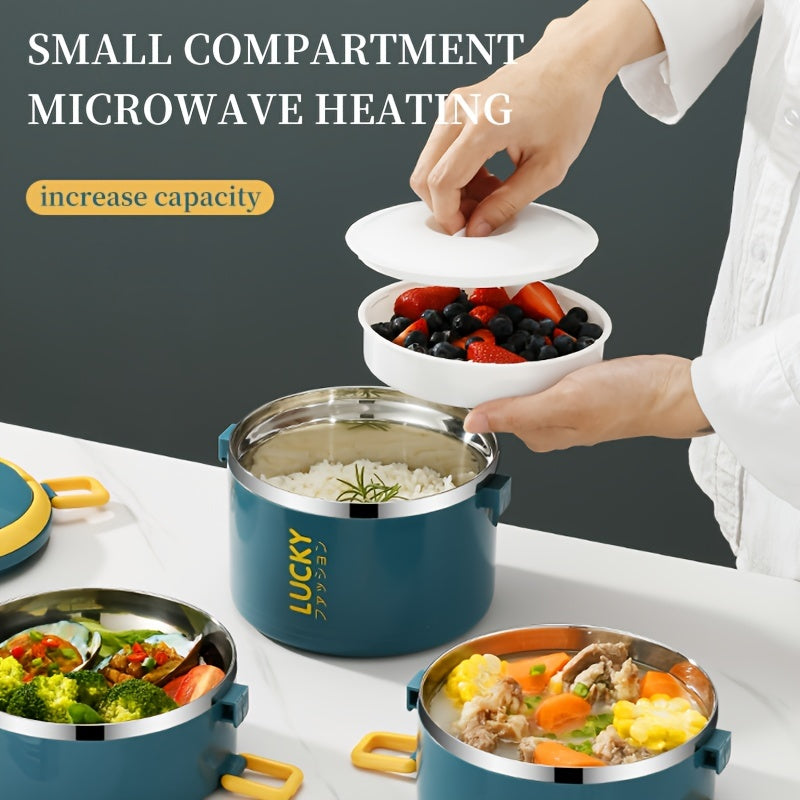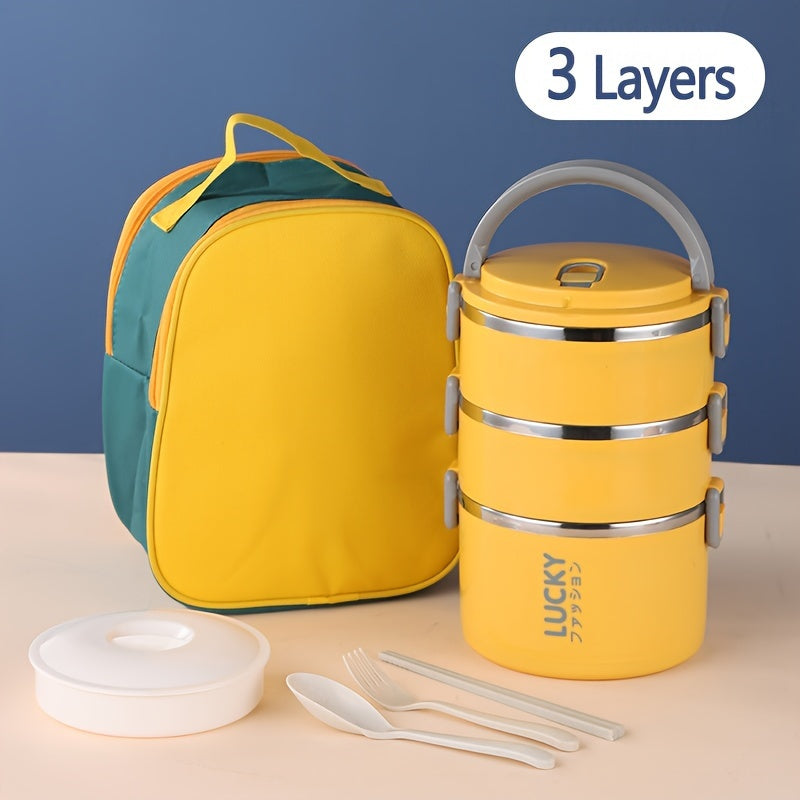Katta hajmli zanglamaydigan po'latdan yasalgan issiqlik izolyatsiyali tushlik qutisi to'plami, termal sumka va pichoqlik bilan