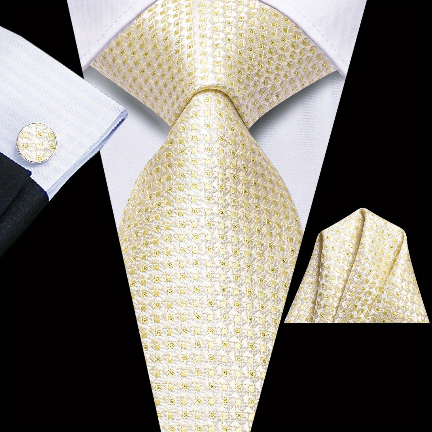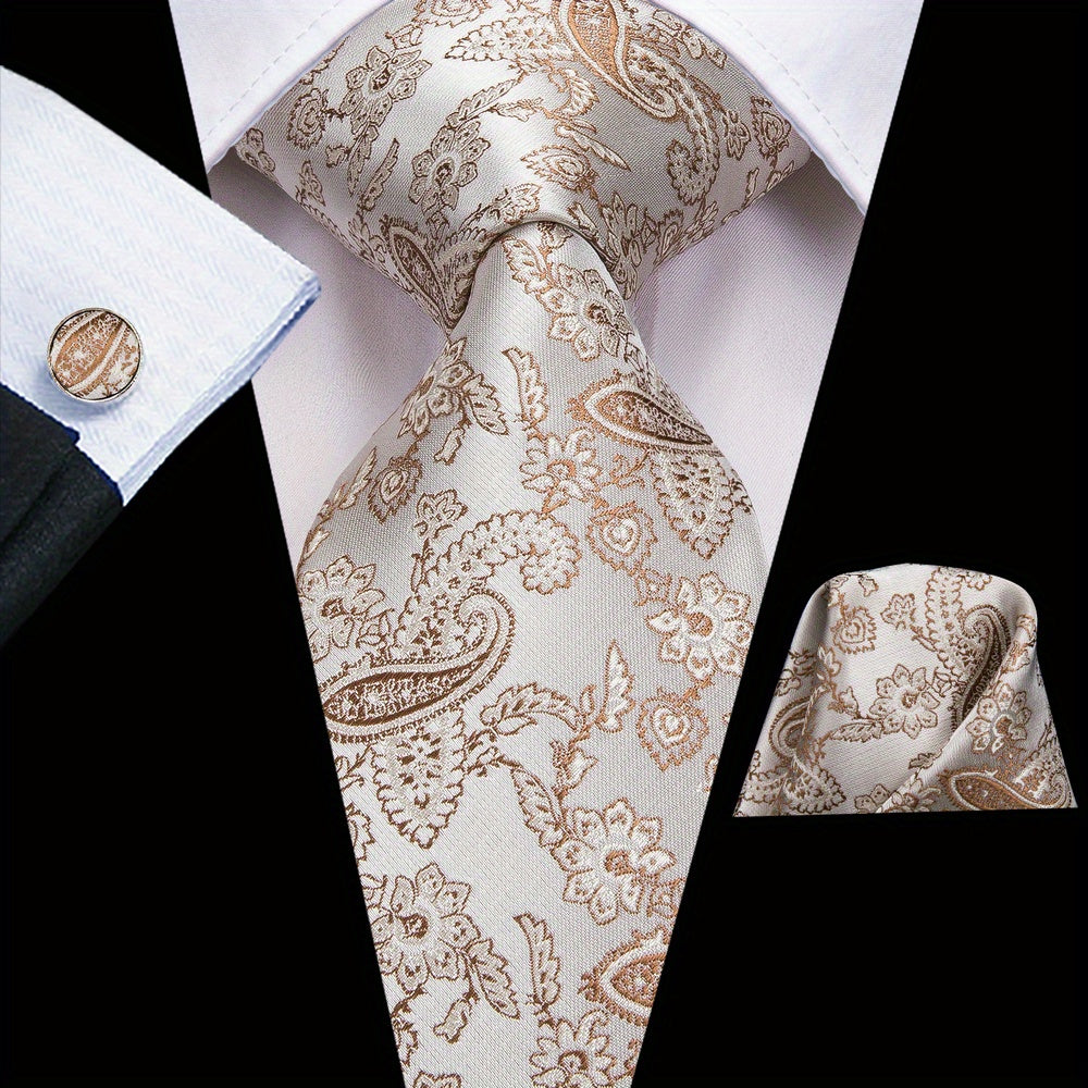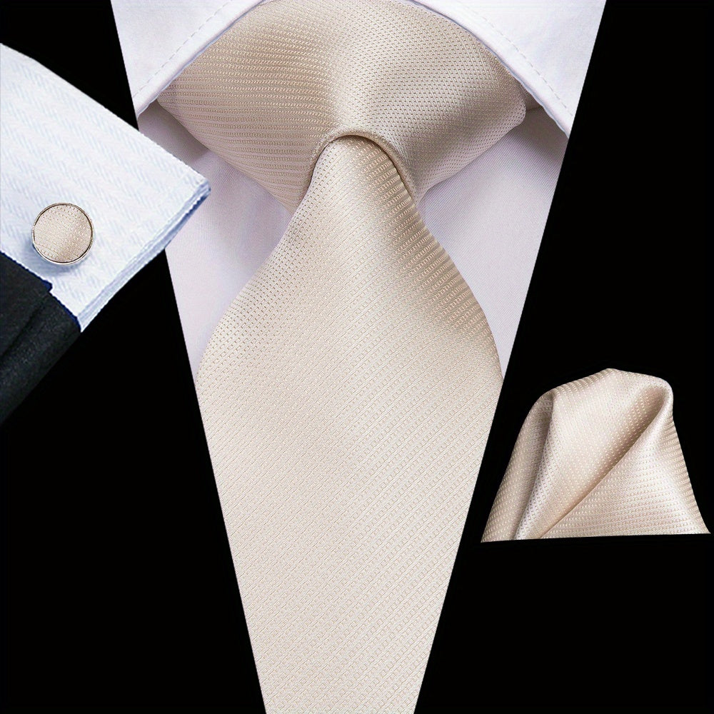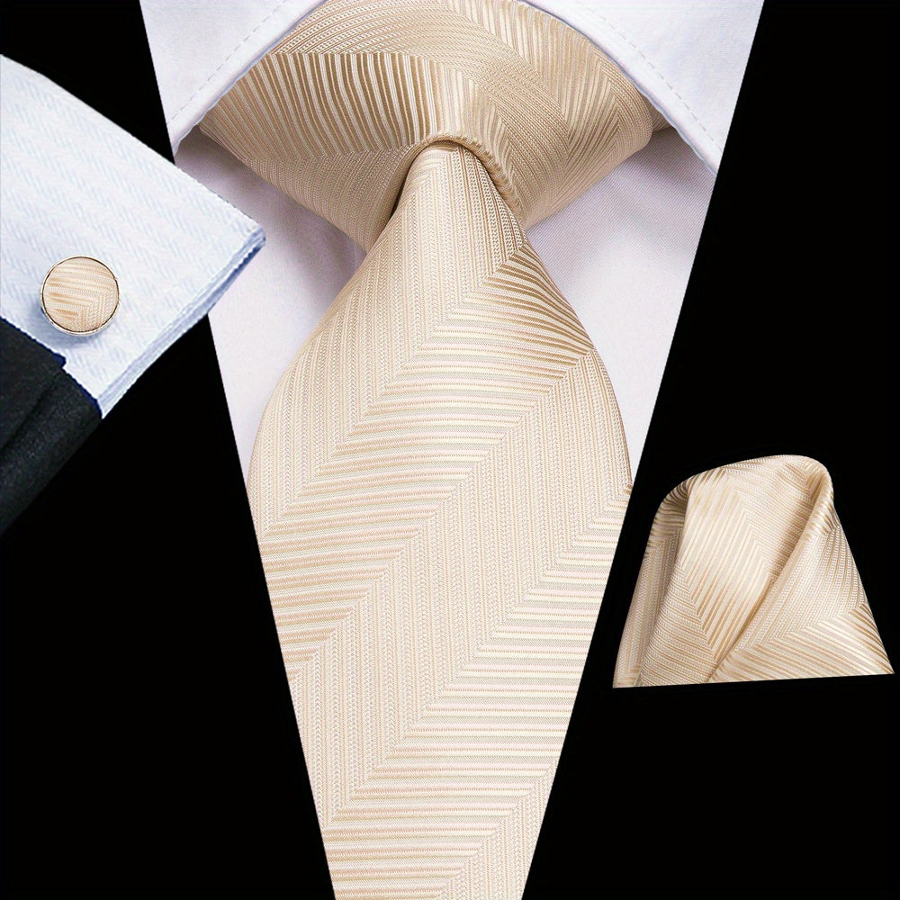 Erkaklar uchun Jacquard to'qilgan bej rangli galstuk, hanky va manşetli kalitlar bilan to'plam, to'y, biznes kechasi uchun