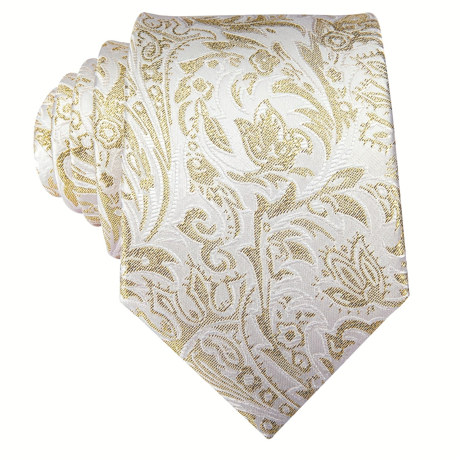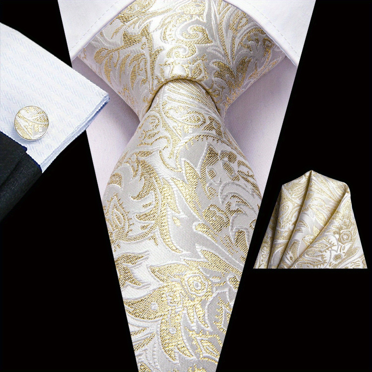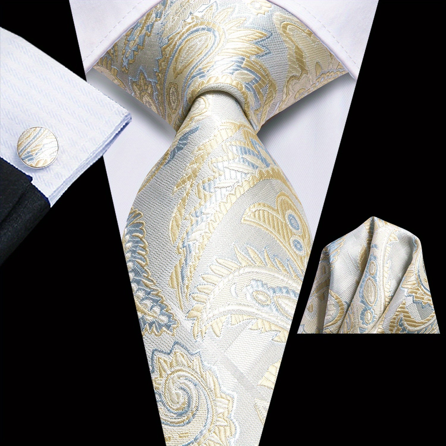 Erkaklar uchun Jacquard to'qilgan bej rangli galstuk, hanky va manşetli kalitlar bilan to'plam, to'y, biznes kechasi uchun