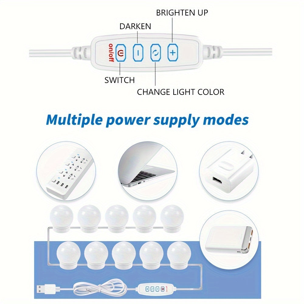USB quvvatlangan 3 rangli sozlanadigan LED lenta, makiyaj stansiyalari va kiyinish stollari uchun ideal - batareyalar kerak emas.