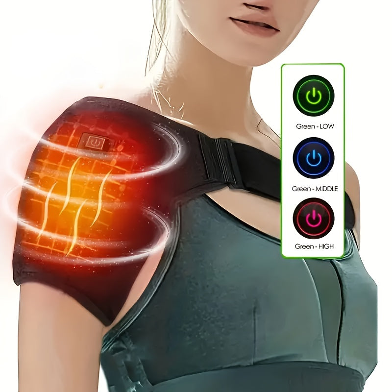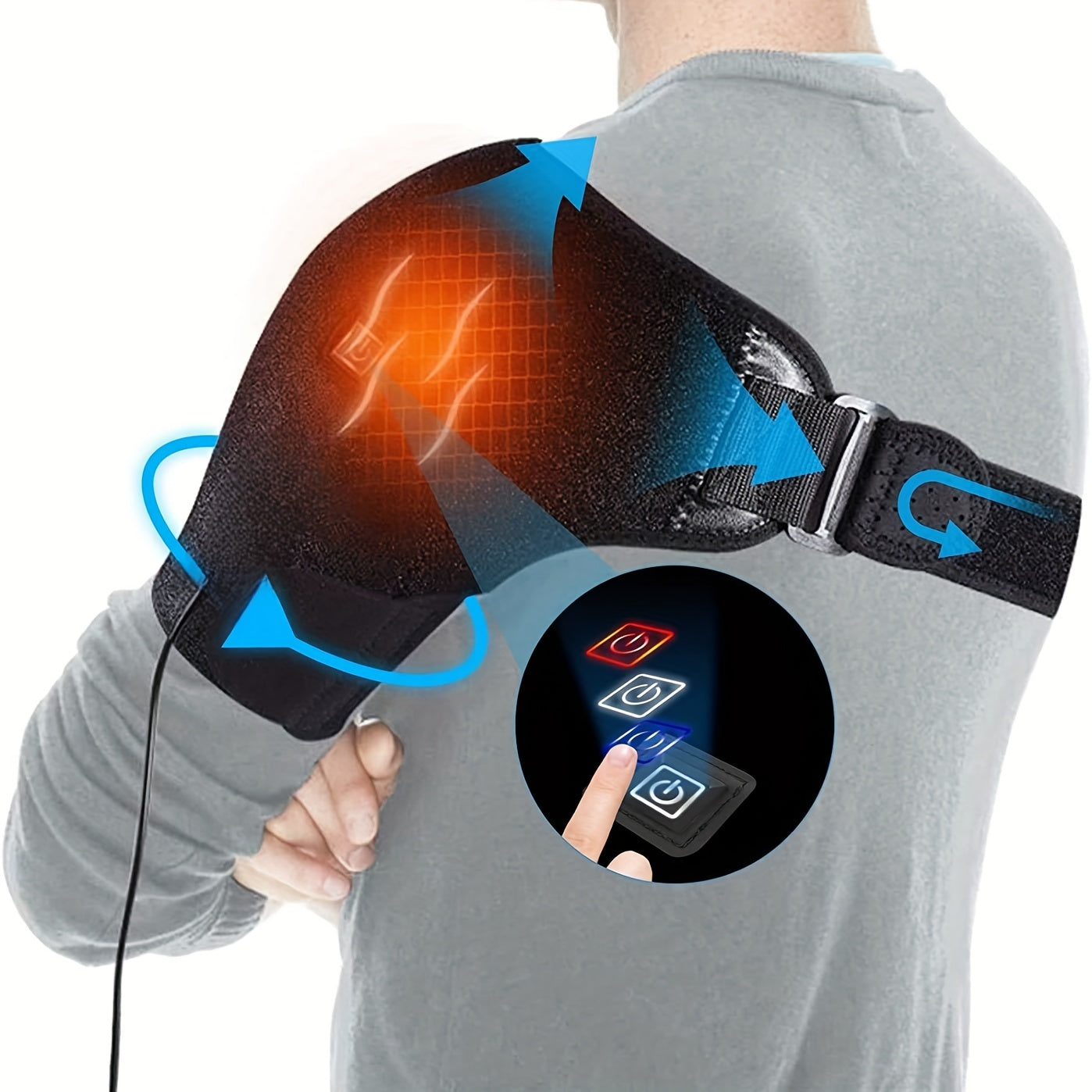 USB quvvatlangan isitiladigan yelka va tirsak massaj qiluvchi tayanch, tinchlantiruvchi issiqlik yostiqchasi, past voltli ishlash, nafas oladigan to'r mato va sozlanadigan tasma bilan.