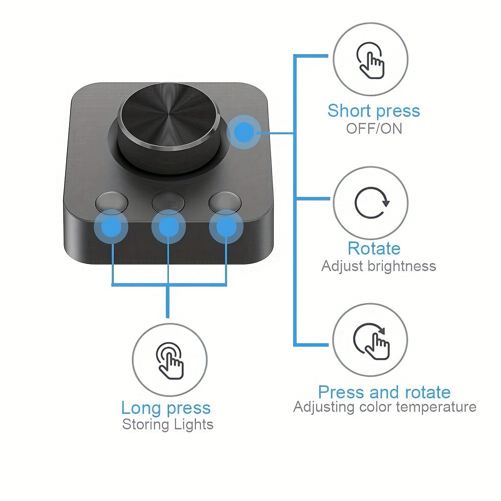 USB-quvvatlangan monitor yoritgichi, mexanik kalit va simsiz masofadan boshqarish pultiga ega, 92 LED, bosqichsiz dimming, 3000-6500K rang harorati, matli metall qoplama - uy va ofis uchun ideal, portativ