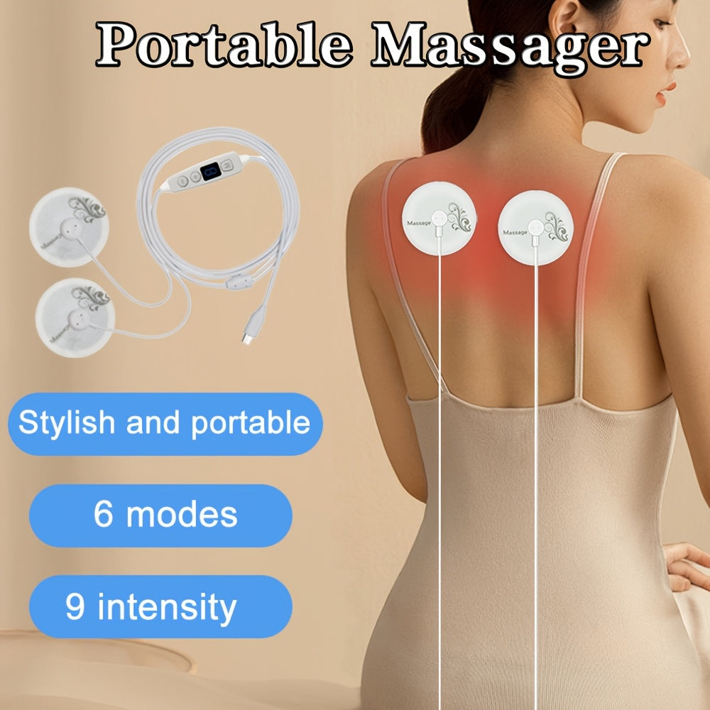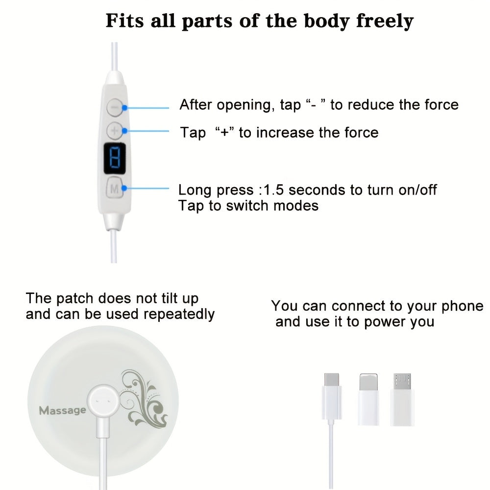 USB quvvatlangan ko'chma massajer, displey bilan, 8 ta intensivlik darajasi va 6 ta rejim, qo'llar/ort/oyoqlar uchun 3 juft jel plastinkalar bilan, telefon uchun Type-C ulanishi, sayohat uchun qulay, mukammal sovg'a uchun