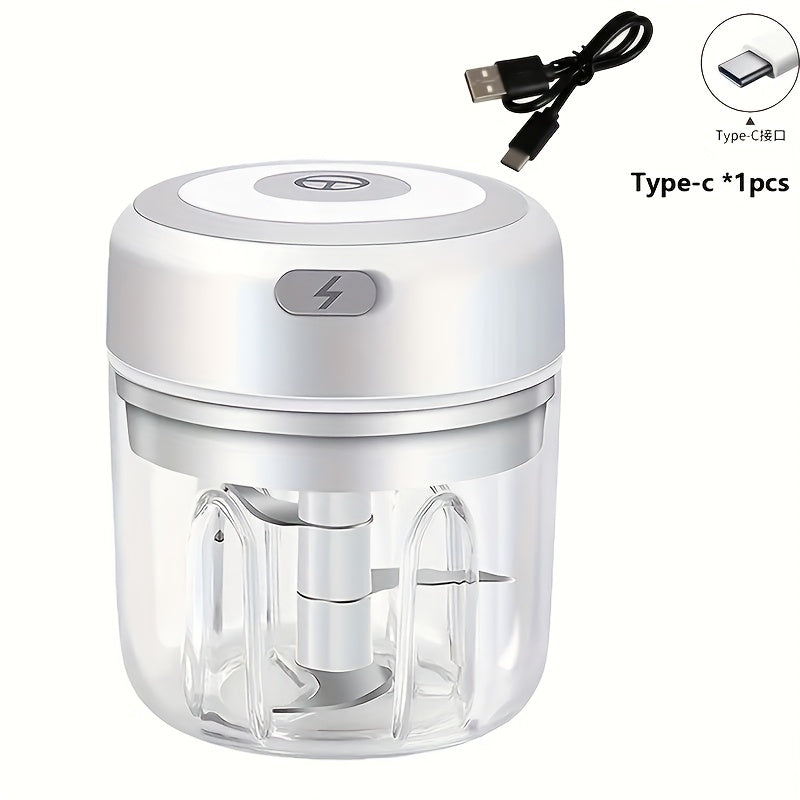 Turli taomlar uchun zanglamaydali po'latdan yasalgan pichog'li USB qayta zaryadlanadigan elektr sarimsoq maydalagich va sabzavotlar uchun moshlagich - portativ, simsiz oshxona qurilmasi.