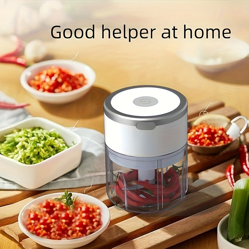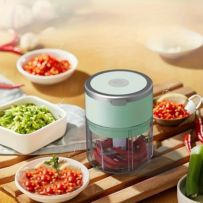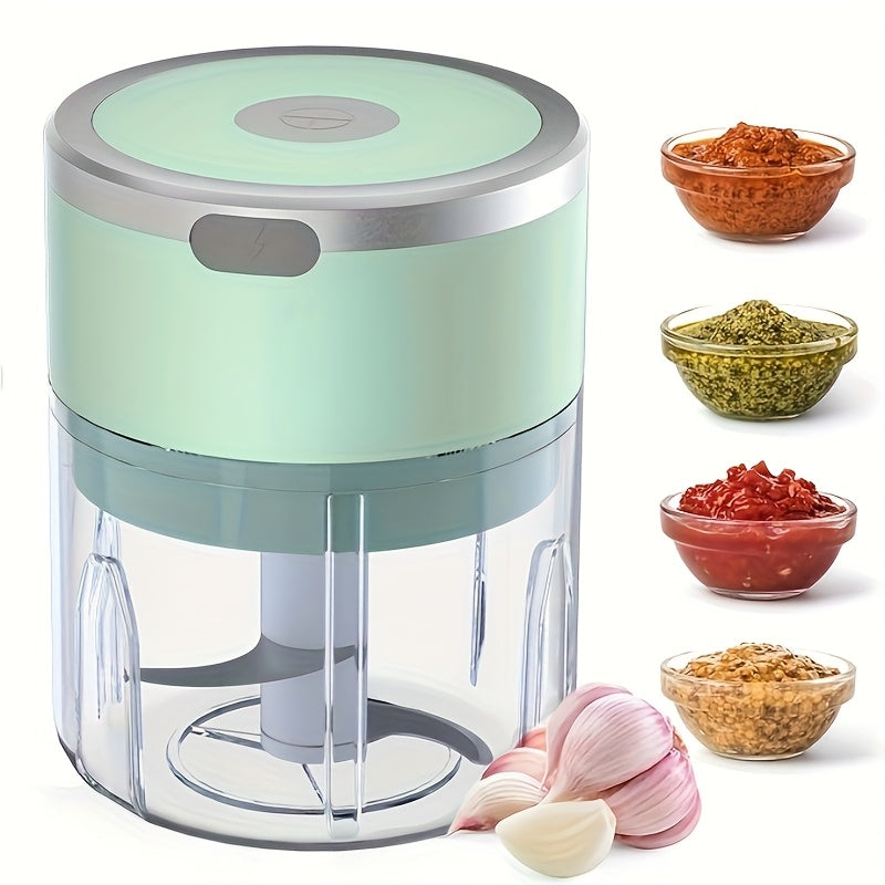 Kuchli maydalagich bilan USB orqali qayta zaryadlanadigan Elektr sarimsoq maydalagich, turli mahsulotlar uchun - kichik, shaffof va portativ oshxona asbobi.