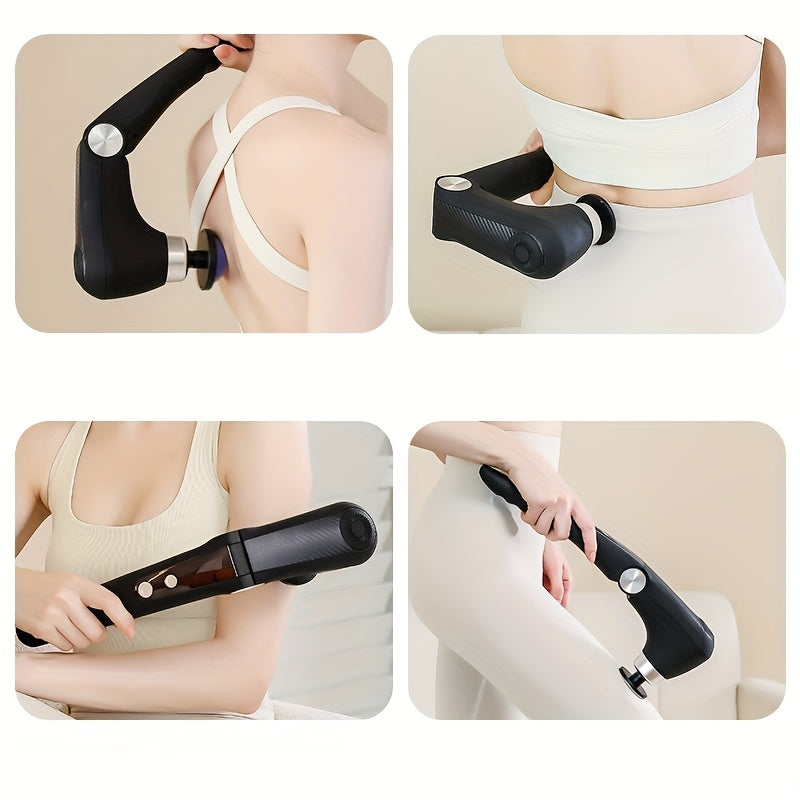 USB orqali zaryadlanadigan, 9 ta intensivlik sozlamalari, bir nechta burchak sozlamalari, 10 ta almashtiriladigan massaj boshliqlari va issiq/sovuq terapiya imkoniyatlariga ega bo'lgan qiyshayuvchi fasiyal gun.