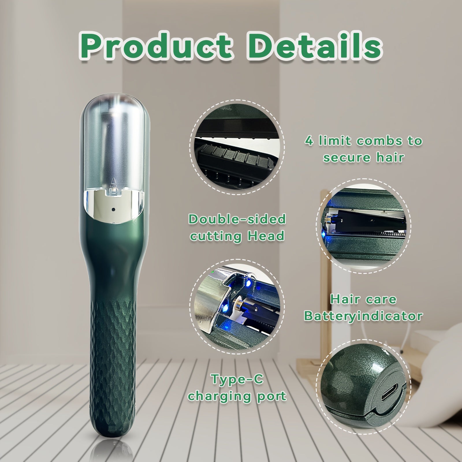 USB orqali zaryadlanadigan soch qirqish mashinasi yumshoq, sog'lom sochlar uchun - yashil, ikki pichoqli, portativ bo'lak soch va zararlangan sochlarni olib tashlovchi