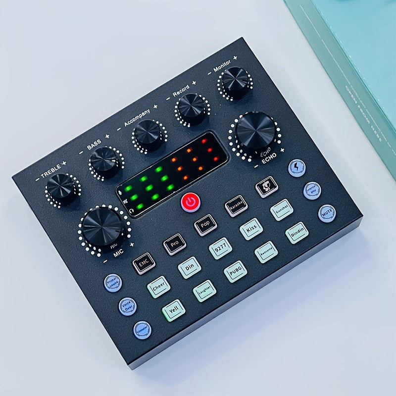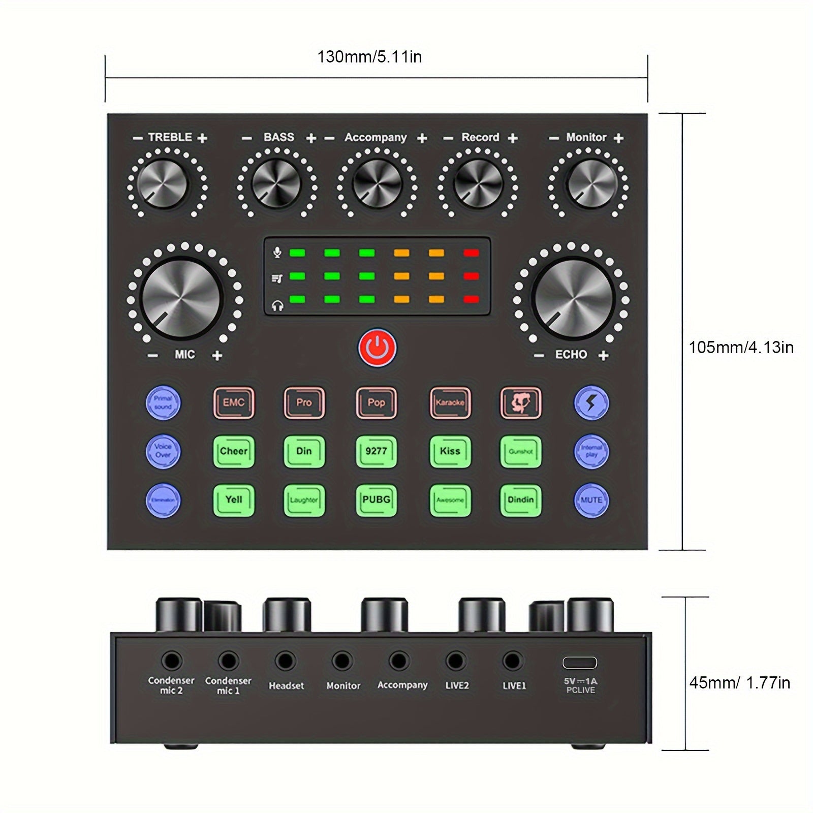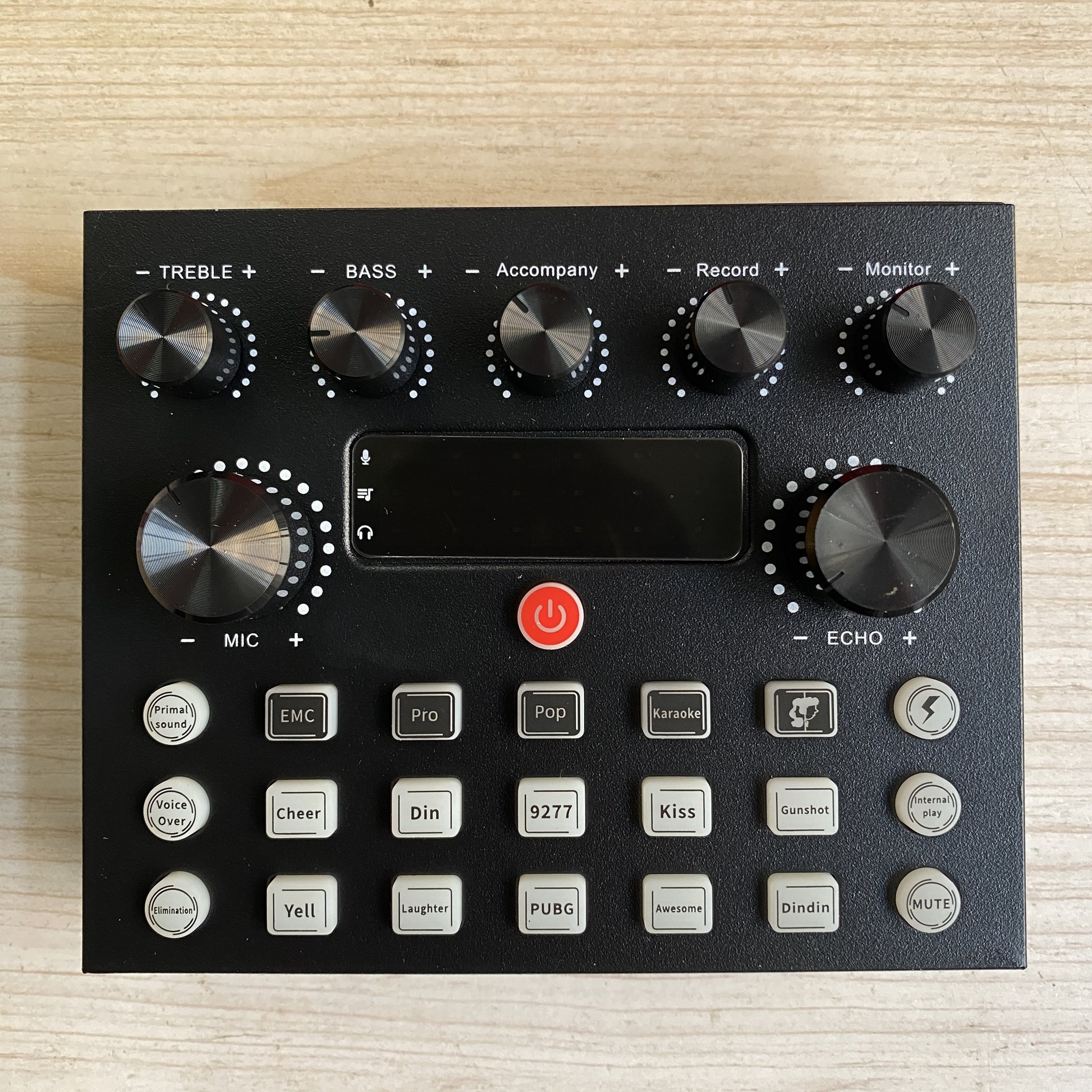 V8S Pro Audio Interfeysi Ovozni O'zgartirish Effektlari bilan - USB Quvvatlanadigan, 500mAh Qayta Zaryadlanadigan, ABS Qora Ovoz Kartasi PC yozuvi, qo'shiq aytish, oqim va o'yinlar uchun, Mikrofon va Quloqchin Ulanishi bilan