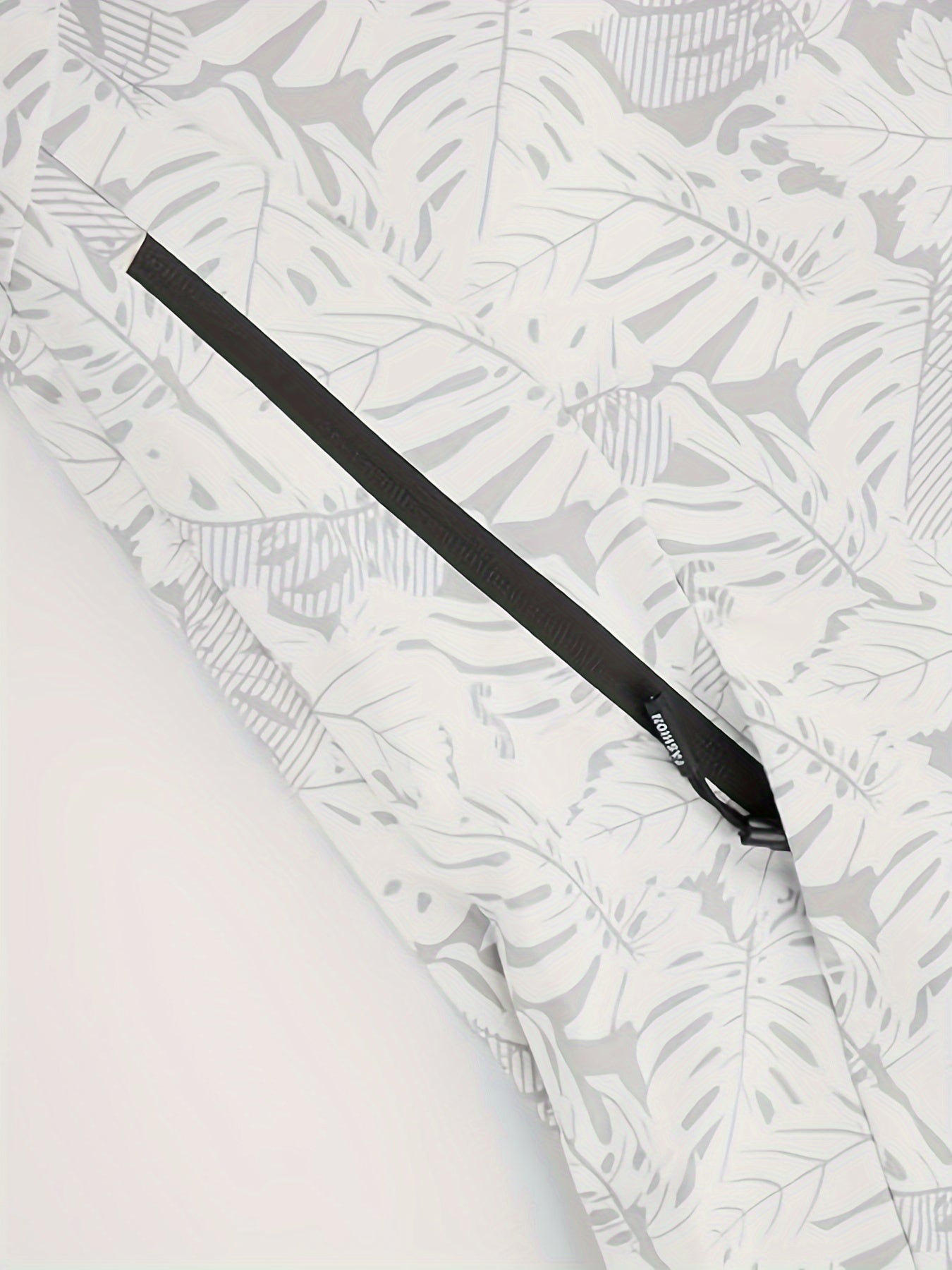 VAKAUP Erkaklar uchun Gullar naqshidagi Sport Kurtkasi, 100% Polyesterdan yasalgan, Fermuarsiz, Keng kesim, Cho'ntaklar bilan, Bahor/Kuz piyoda sayr qilish uchun