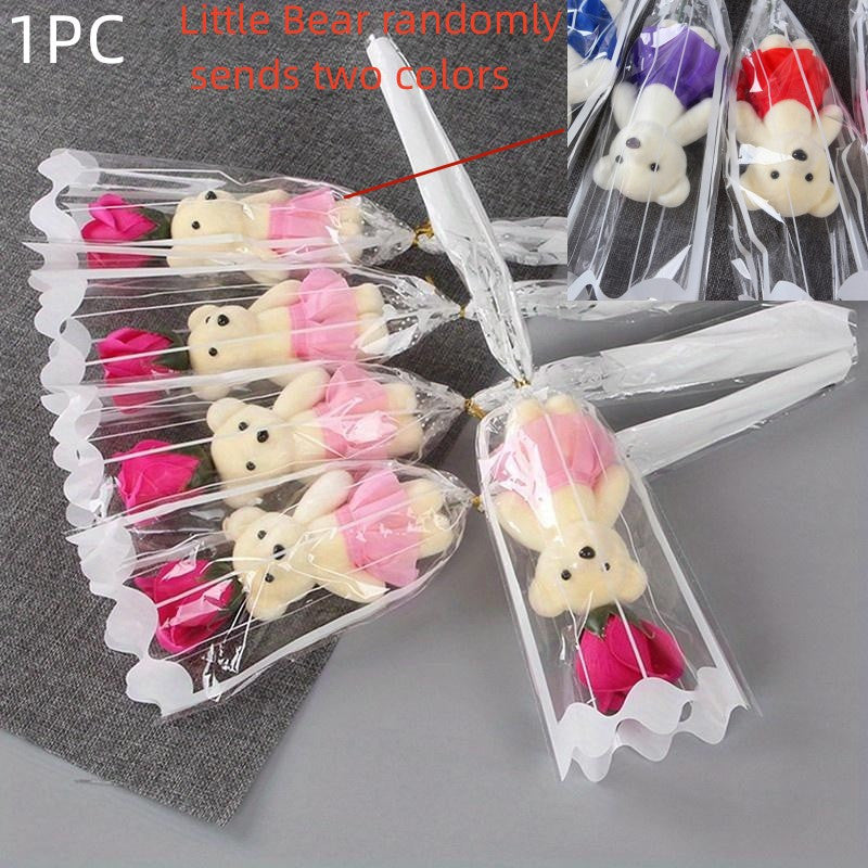 Sun'iy gul kompozitsiyasi, Valentin kuni sovg‘asi, ayiq bilan gulchambar, to‘y yoki uy bezatish uchun