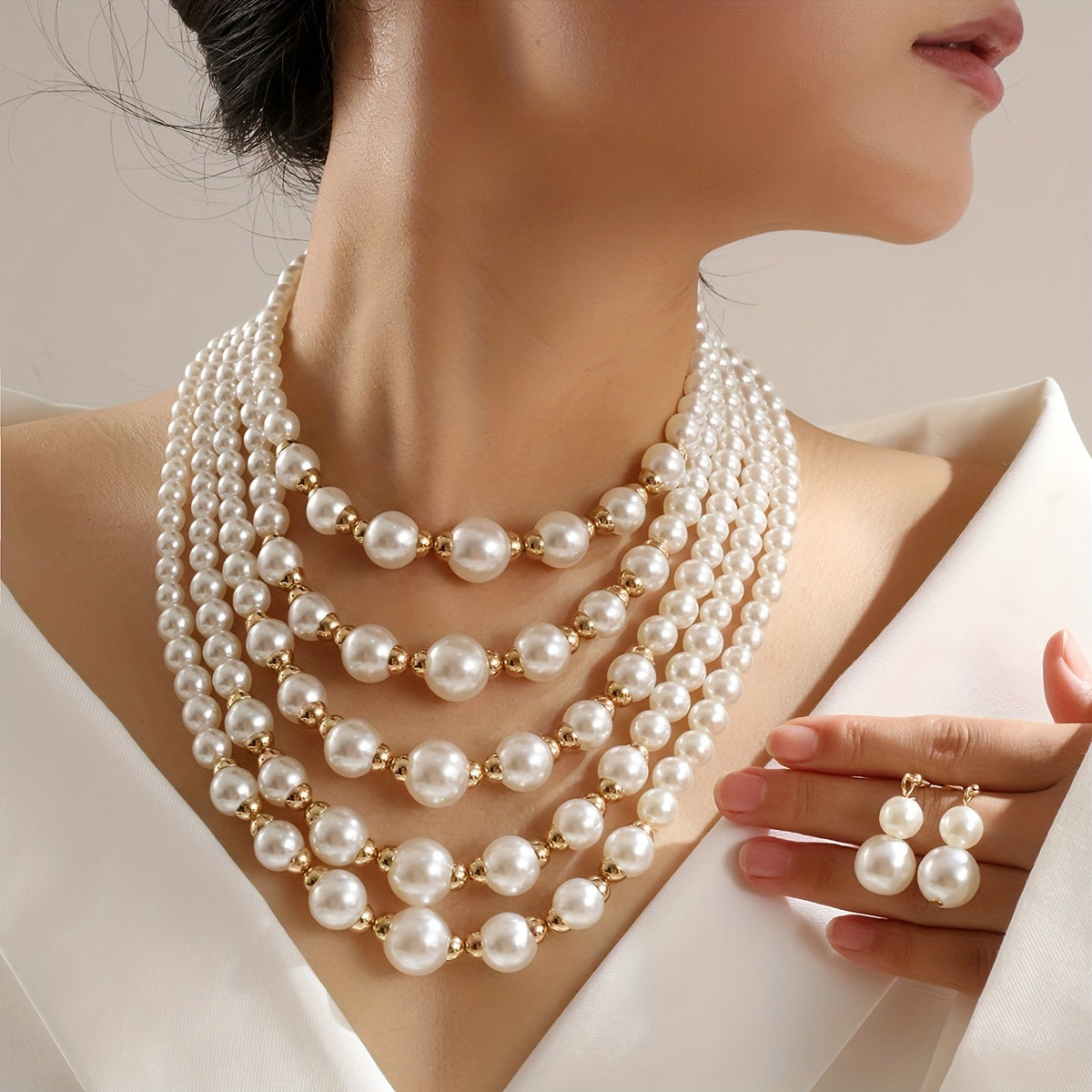 Sevgi kuni maxsus: Nafis vintage uslubidagi ko'p qatlamli soxta marvarid zargarlik to'plami, bilaguzuk va sirg'alar, to'plangan material, qoplamasiz, to'ylar va sovg'alar uchun ideal, har qanday mavsum uchun mukammal.